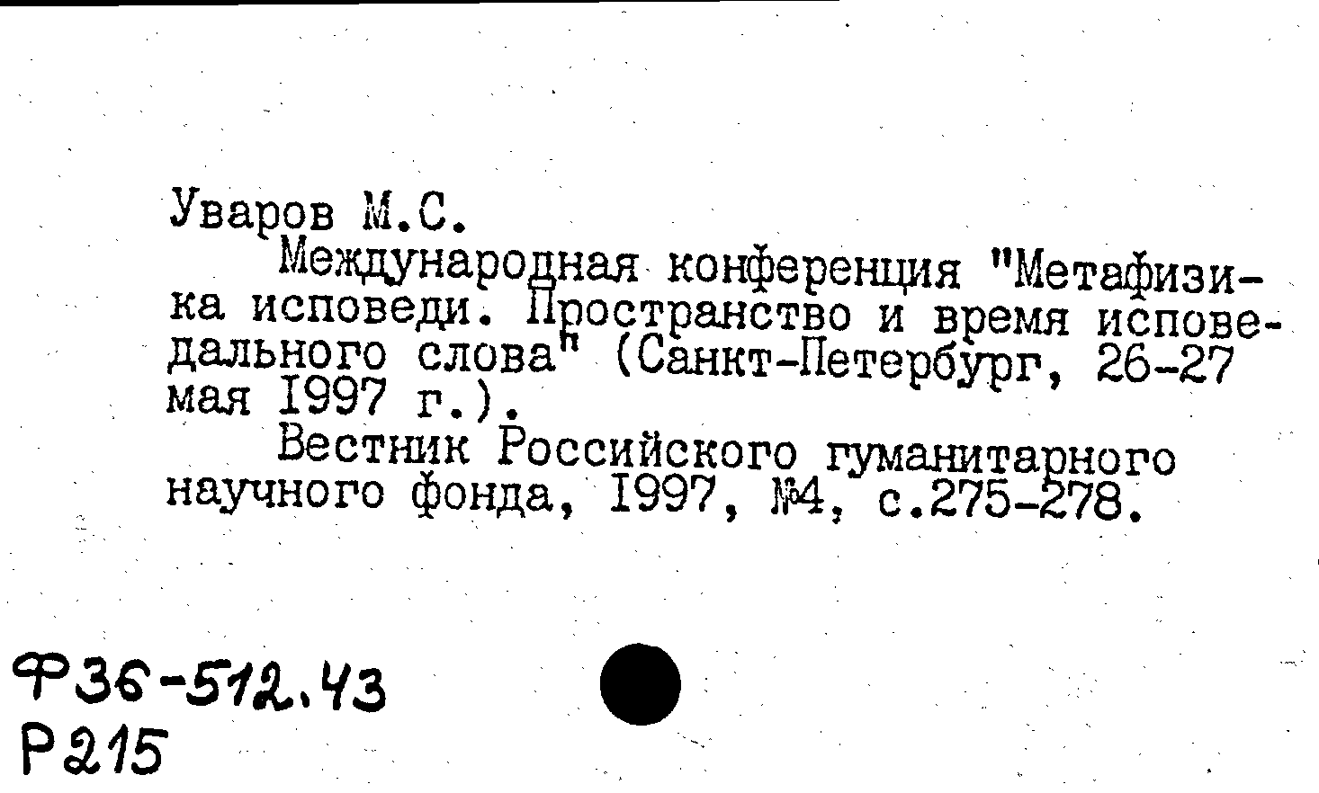 Международная конференция "Метафизика исповеди. Пространство и время исповедального слова" (Санкт-Петербург, 26-27 мая 1997 г.)