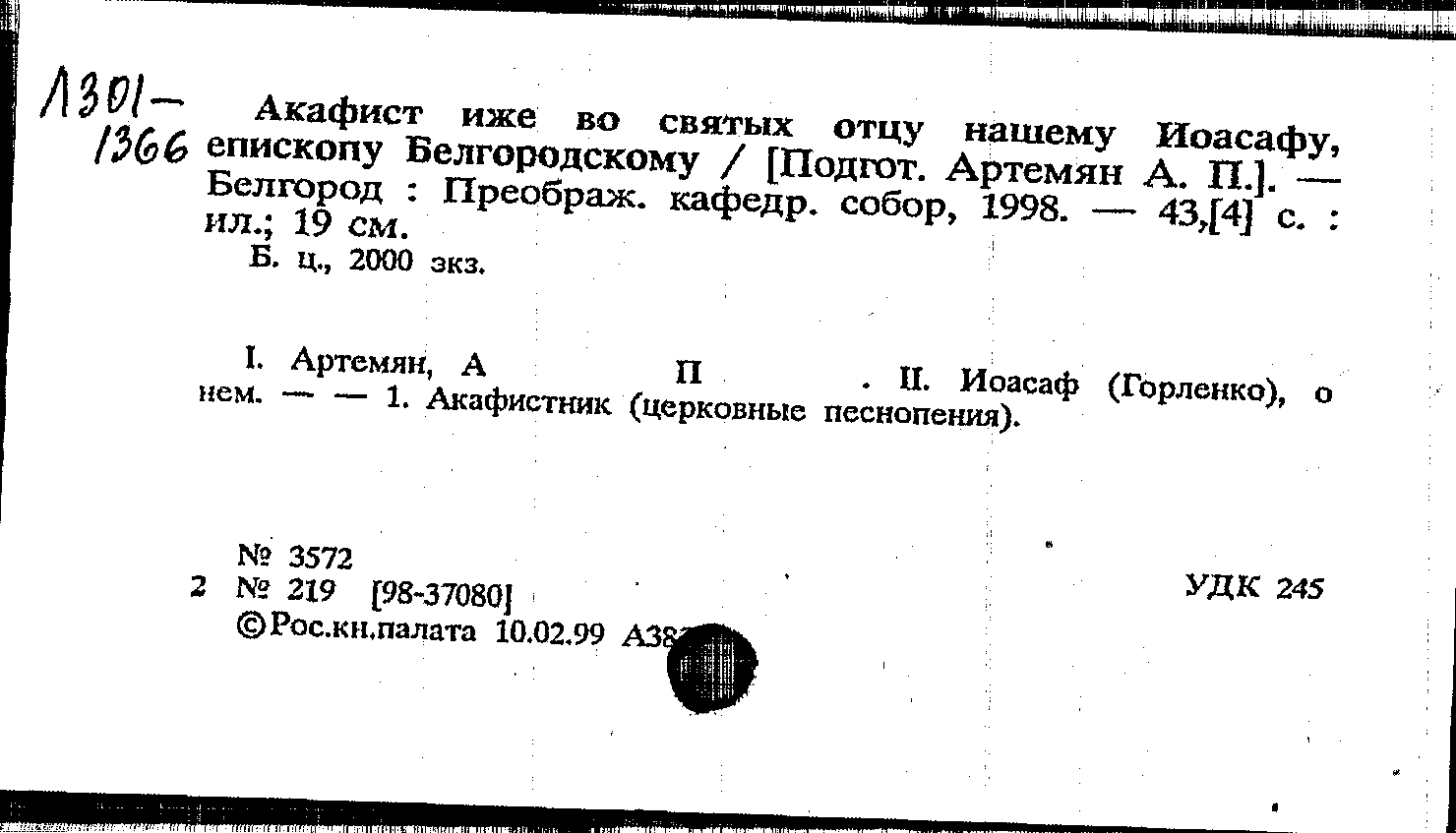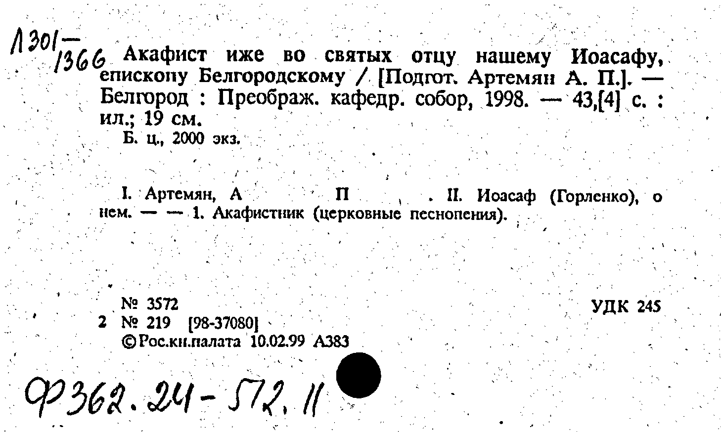 Книга: Акафист иже во святых отцу нашему Иоасафу, епископу Белгородскому