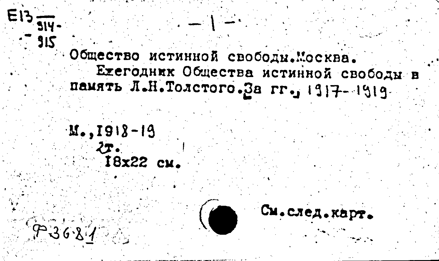 Ежегодник Общества истинной свободы в память Л. Н. Толстого. ...за 1918-1919 год