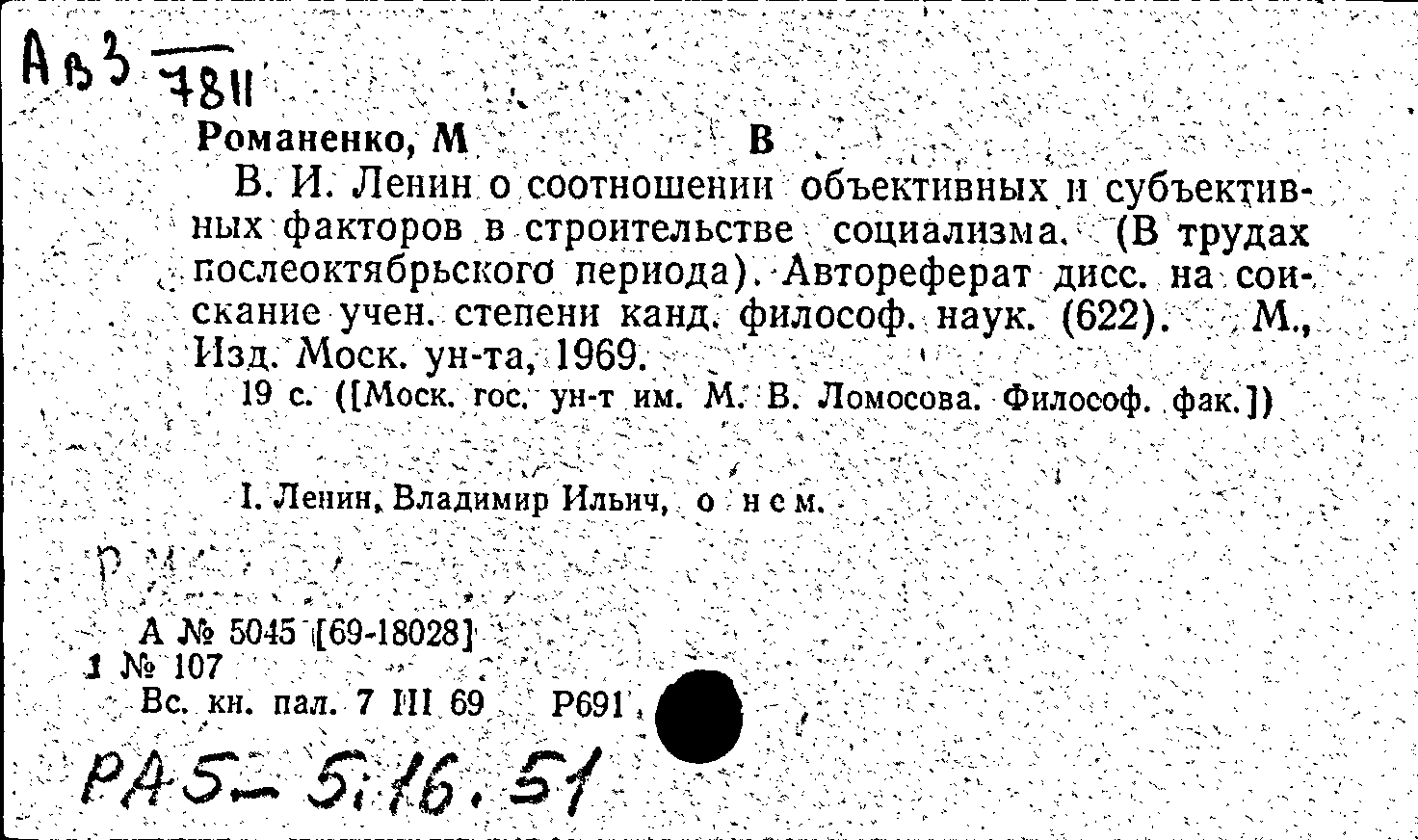 В. И. Ленин о соотношении объективных и субъективных факторов в строительстве социализма