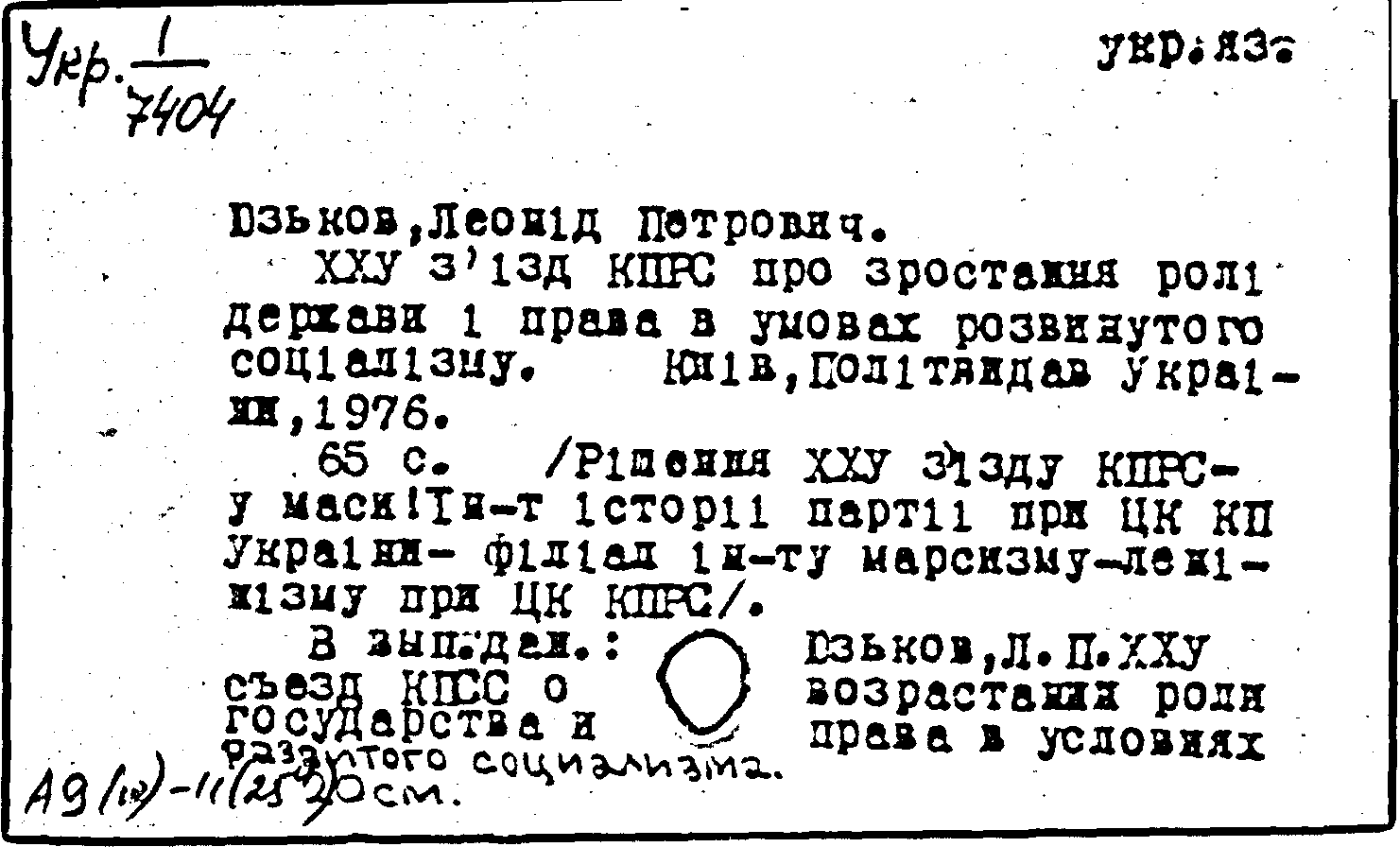 Фонд: КХ, Шифр: Укр 1/7404, Инв.№: 0946158