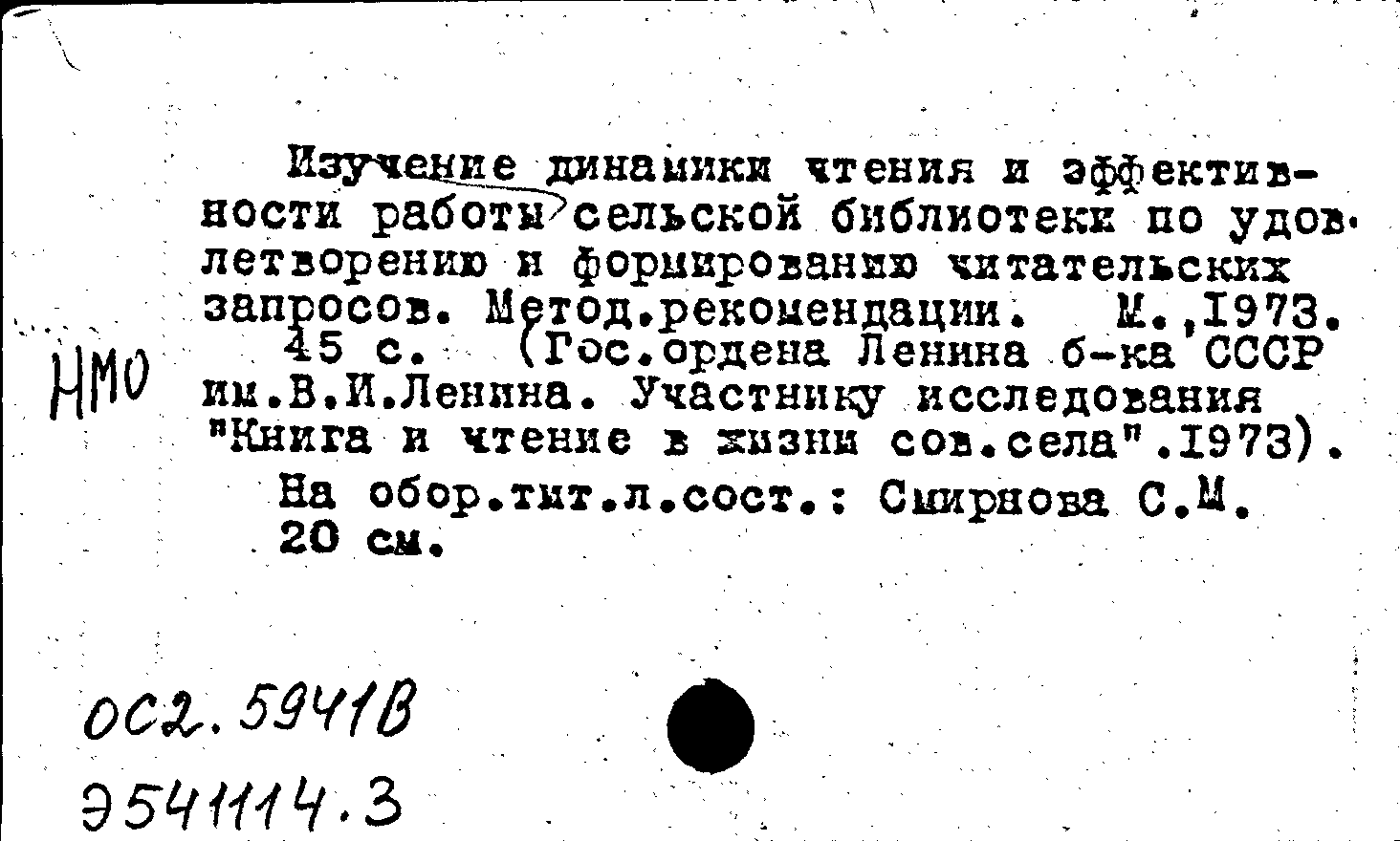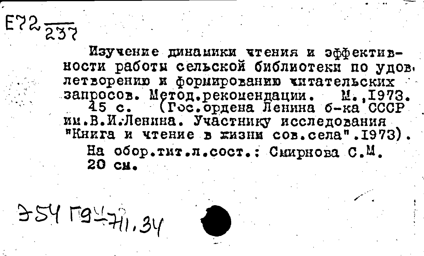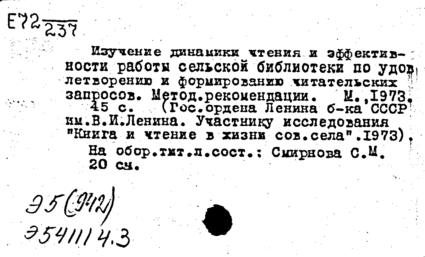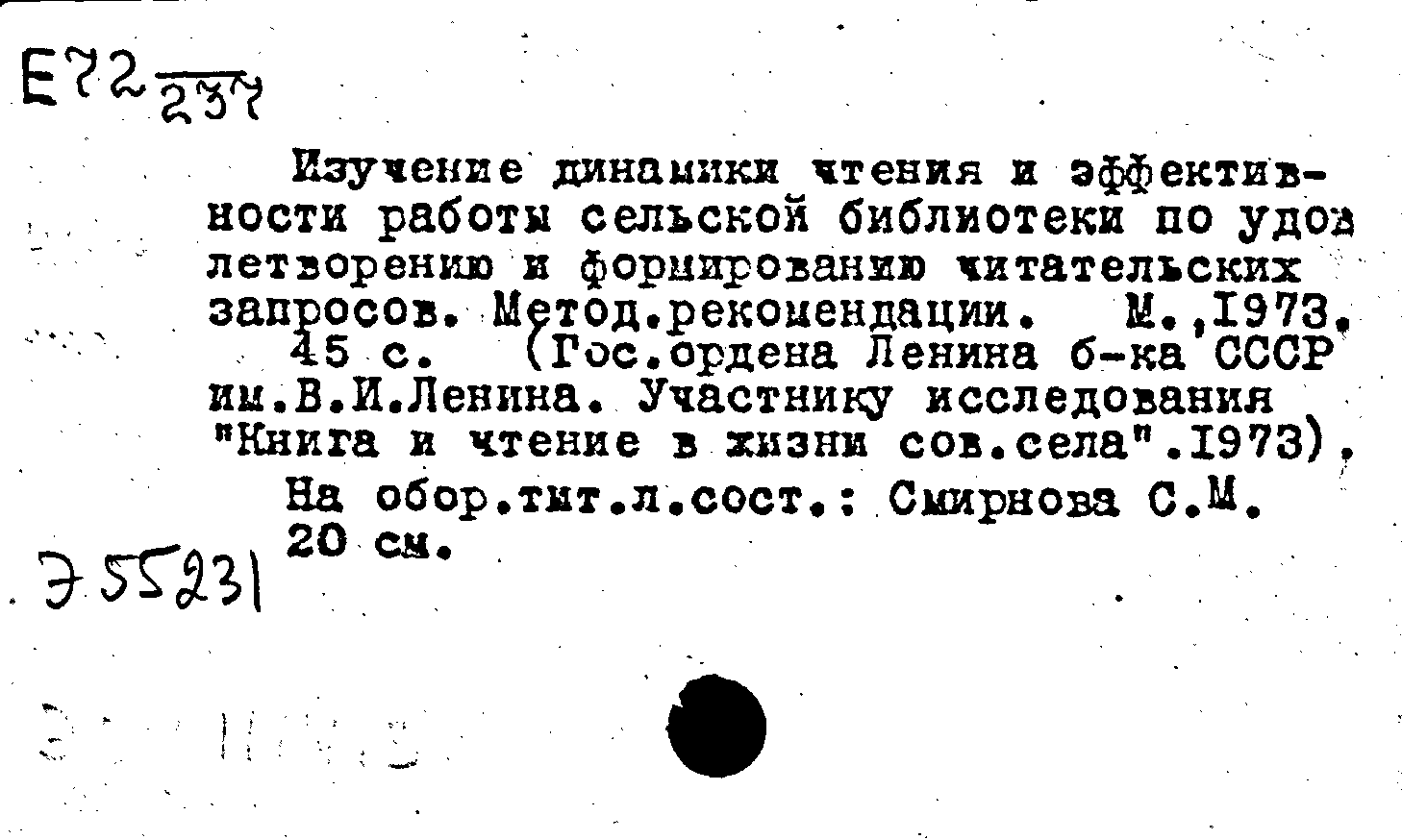 Изучение динамики чтения и эффективности работы сельской библиотеки по удовлетворению и формированию читательских запросов