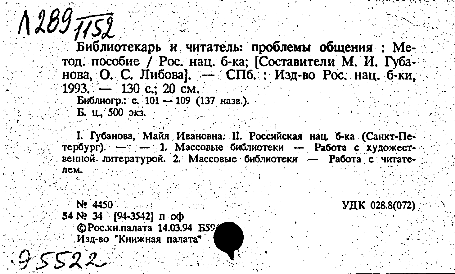 Номер читательского билета