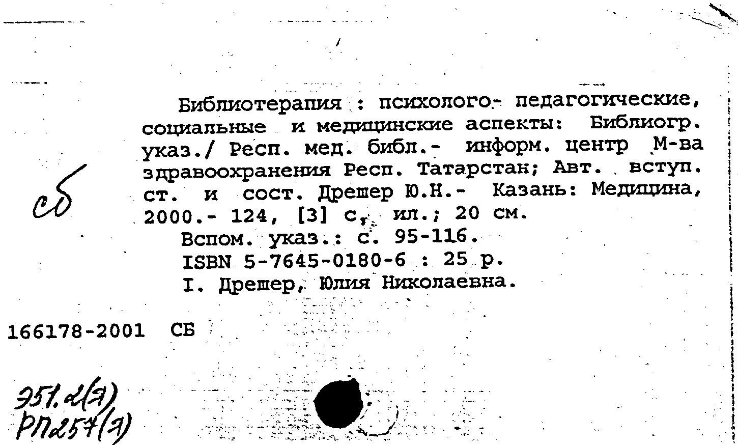 Книга: Библиотерапия: психолого-педагогические, социальные и медицинские аспекты: Библиогр. указатель