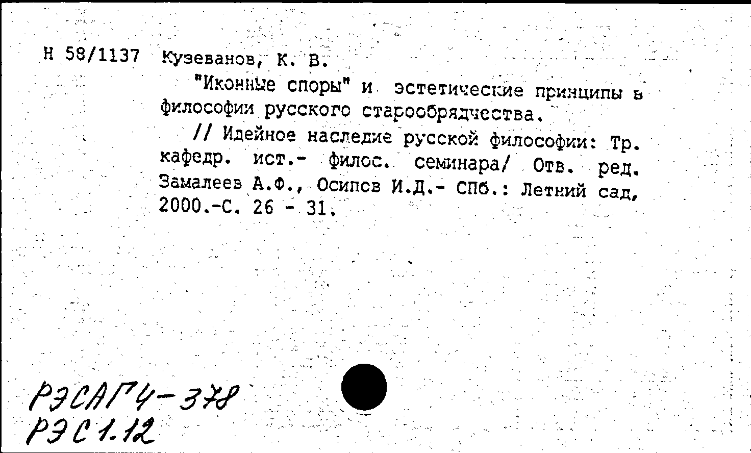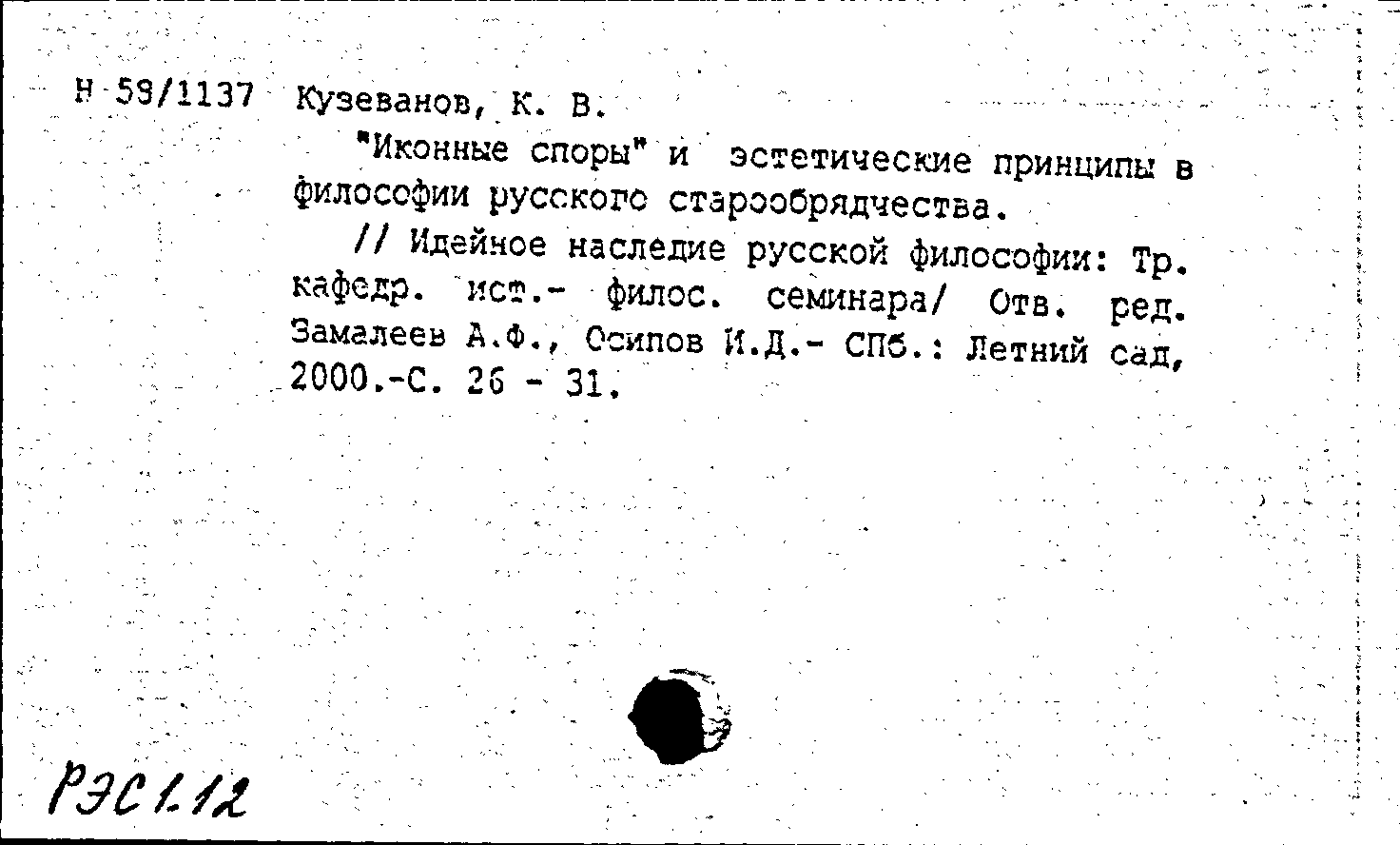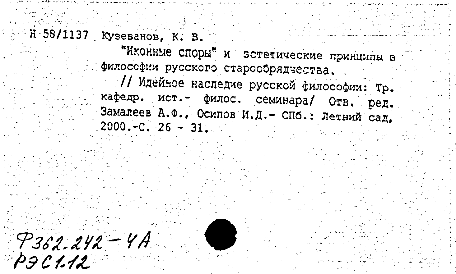 Книга (аналит. описание): "Иконные споры" и эстетические принципы в философии русского старообрядчества