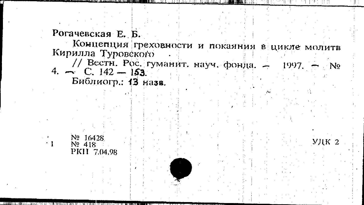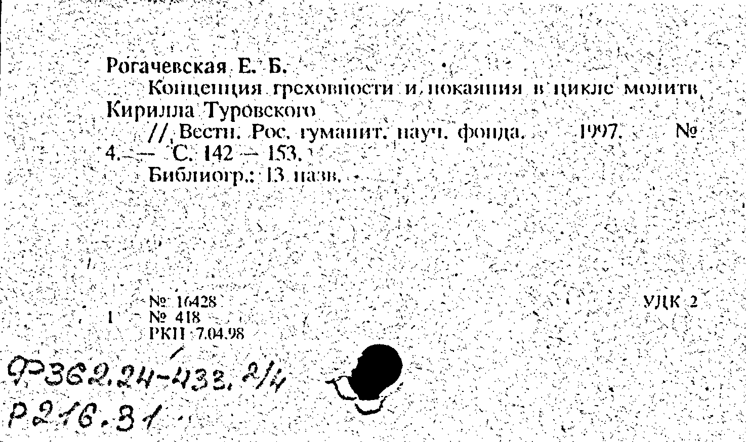 Книга (аналит. описание): Концепция греховности и покаяния в цикле молитв Кирилла Туровского