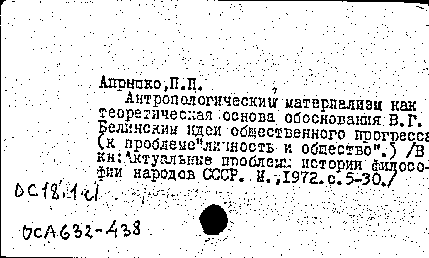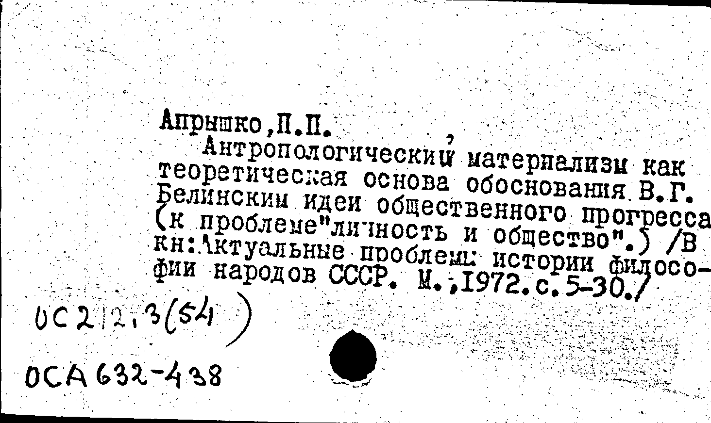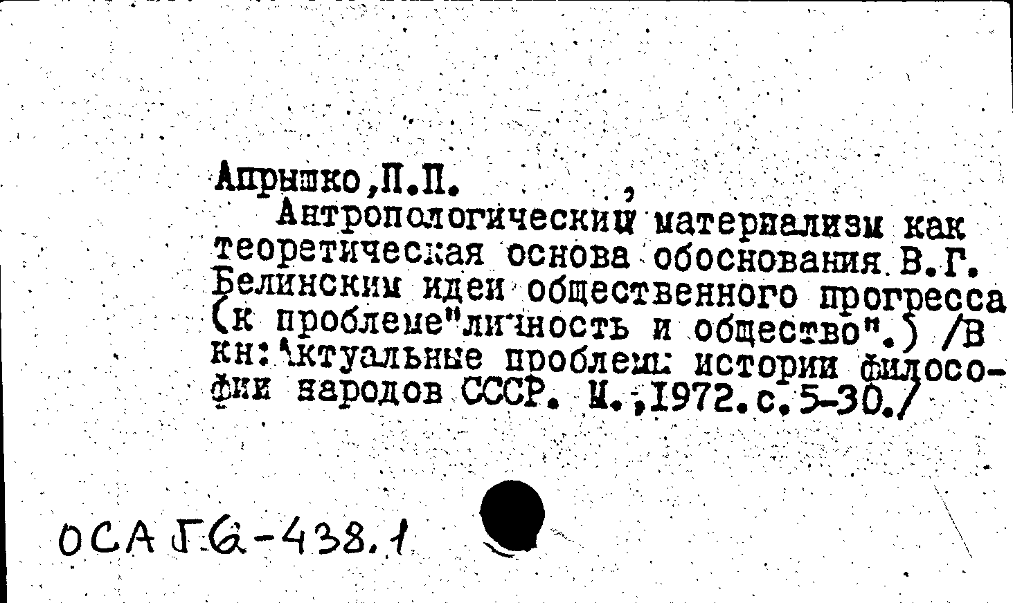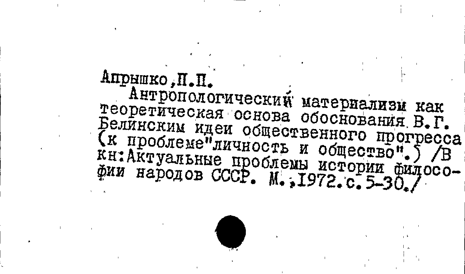 Книга (аналит. описание): Антропологический материализм как теоретическая основа обоснования В. Г. Белинским идеи общественного прогресса (к проблеме "личность и общество")