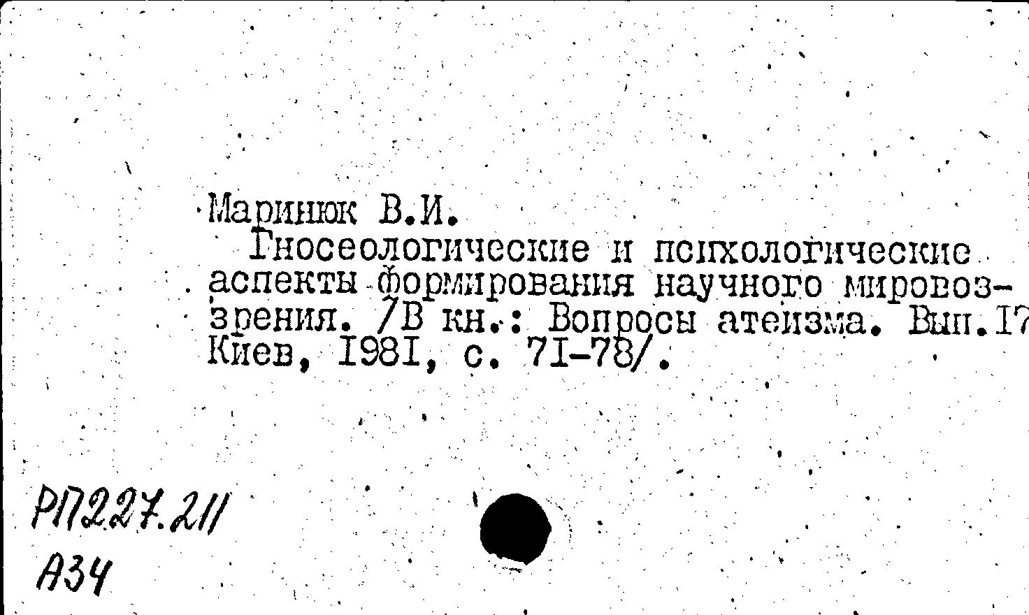 Книга (аналит. описание): Гносеологические и психологические аспекты формирования научного мировоззрения