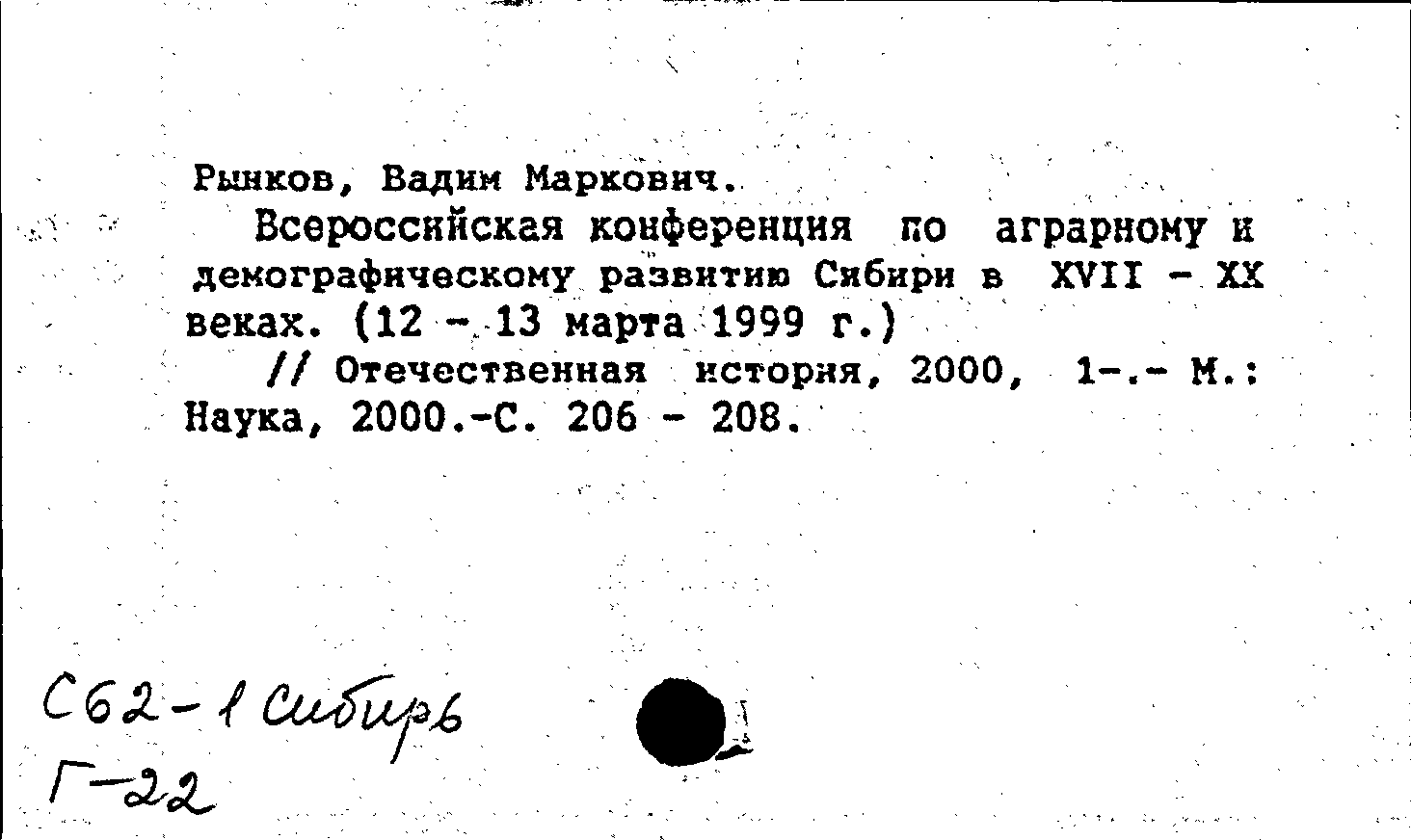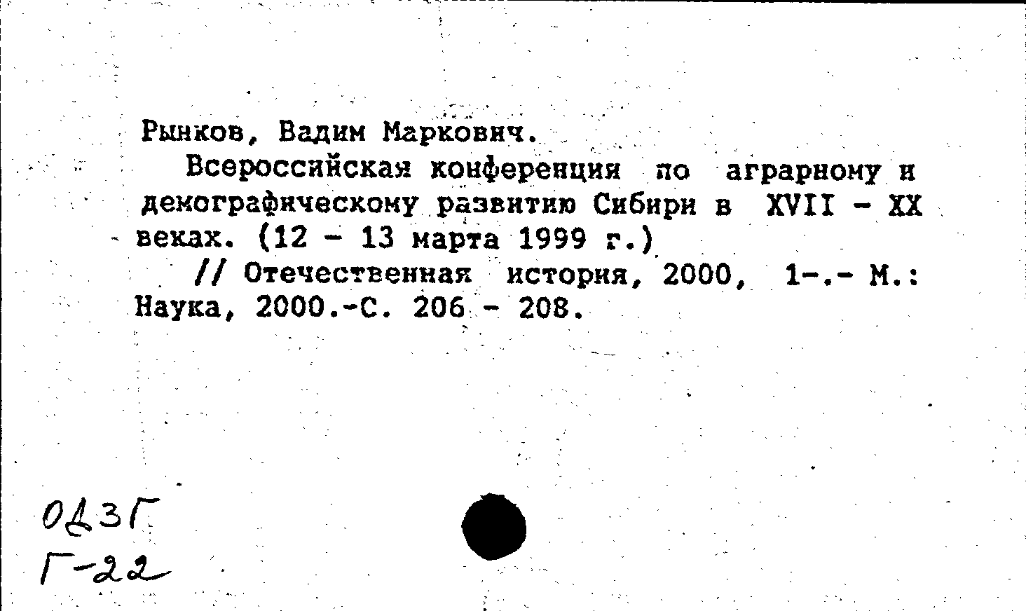 Книга (аналит. описание): Всероссийская конференция по аграрному и демографическому развитию Сибири в XVII-XX веках