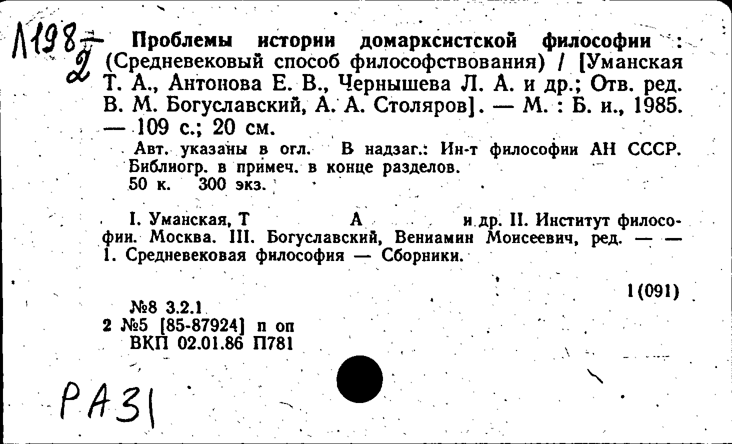 Проблемы истории домарксистской философии (Средневековый способ философствования)