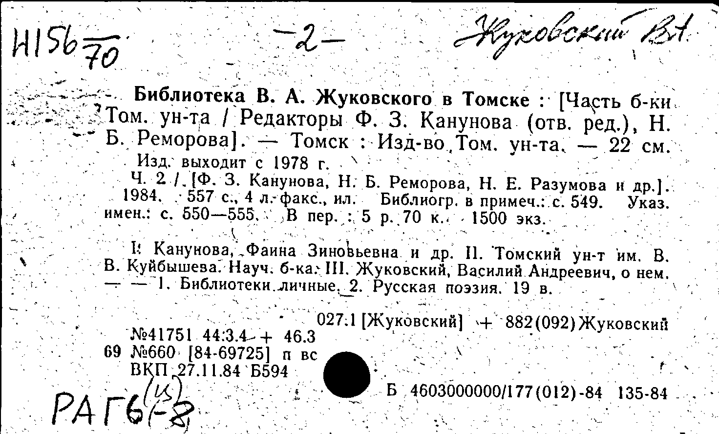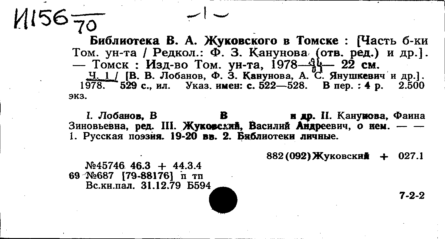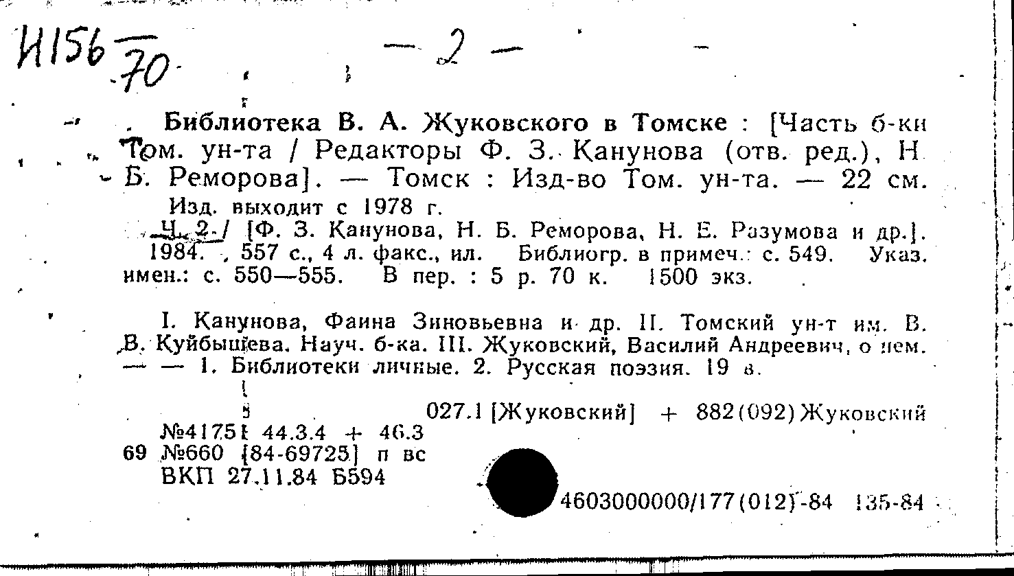 Библиотека В. А. Жуковского в Томске. Ч. 2