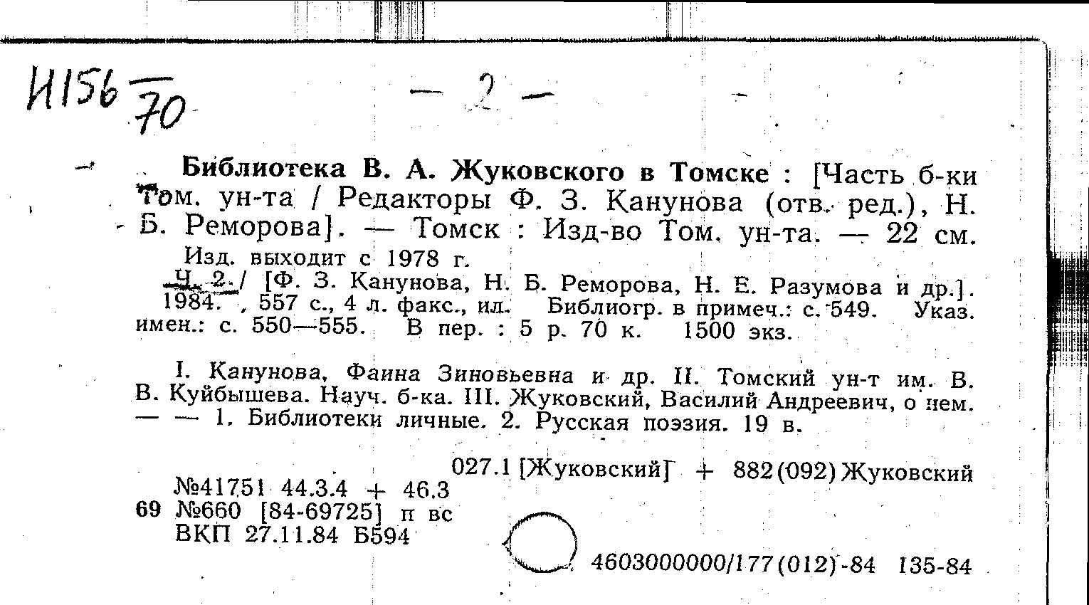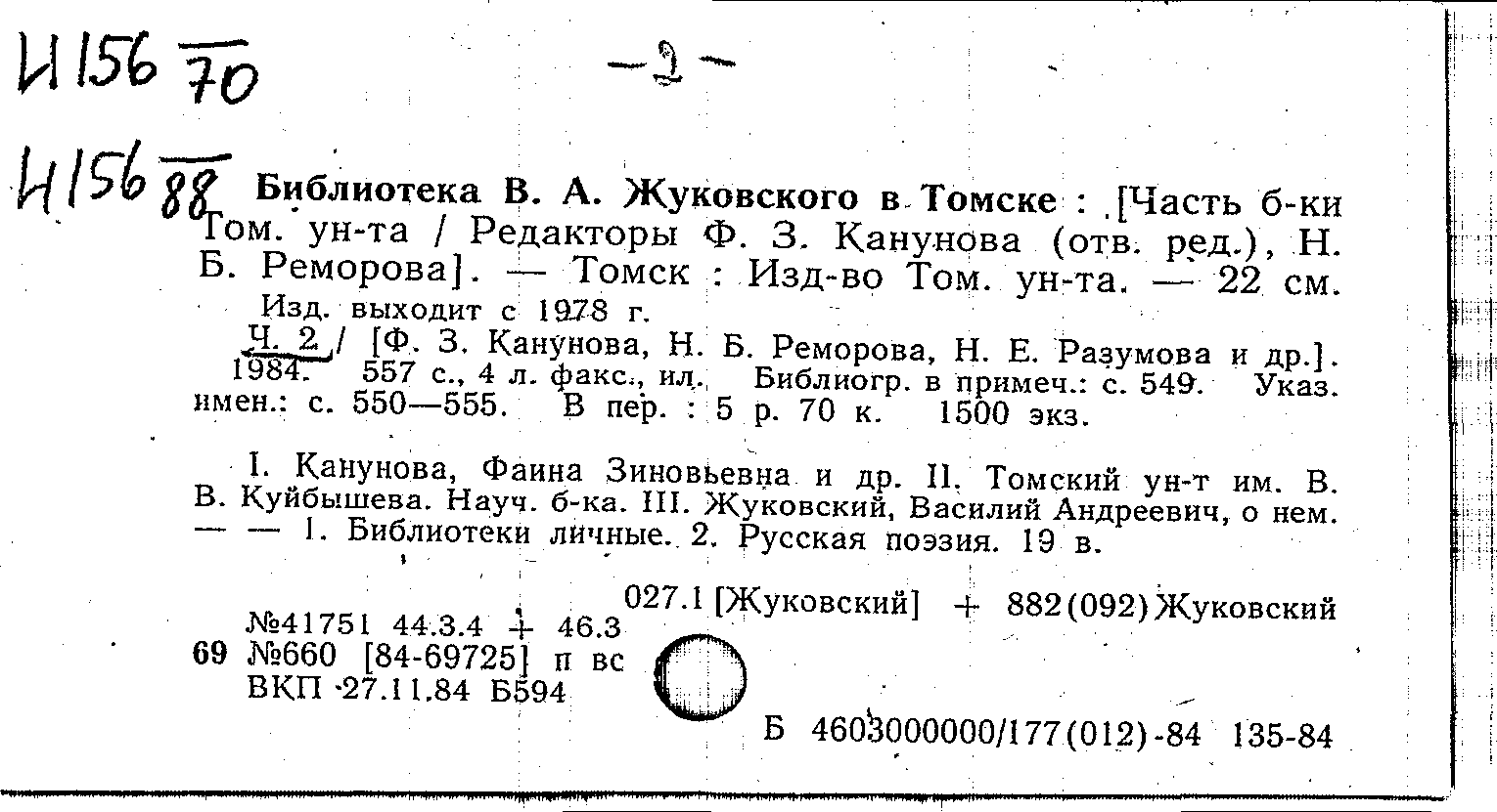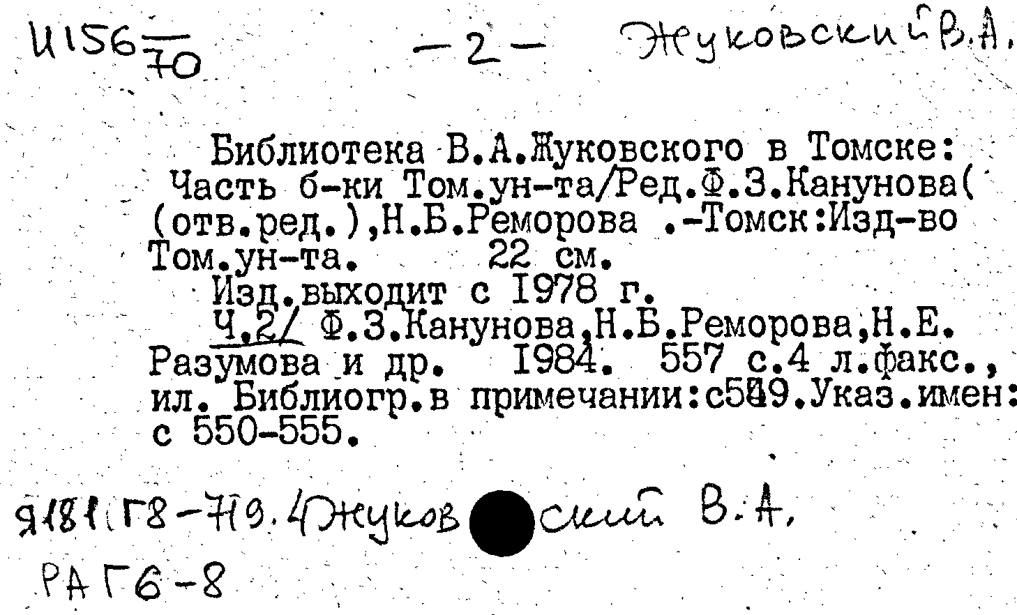 Библиотека В. А. Жуковского в Томске. Ч. 2