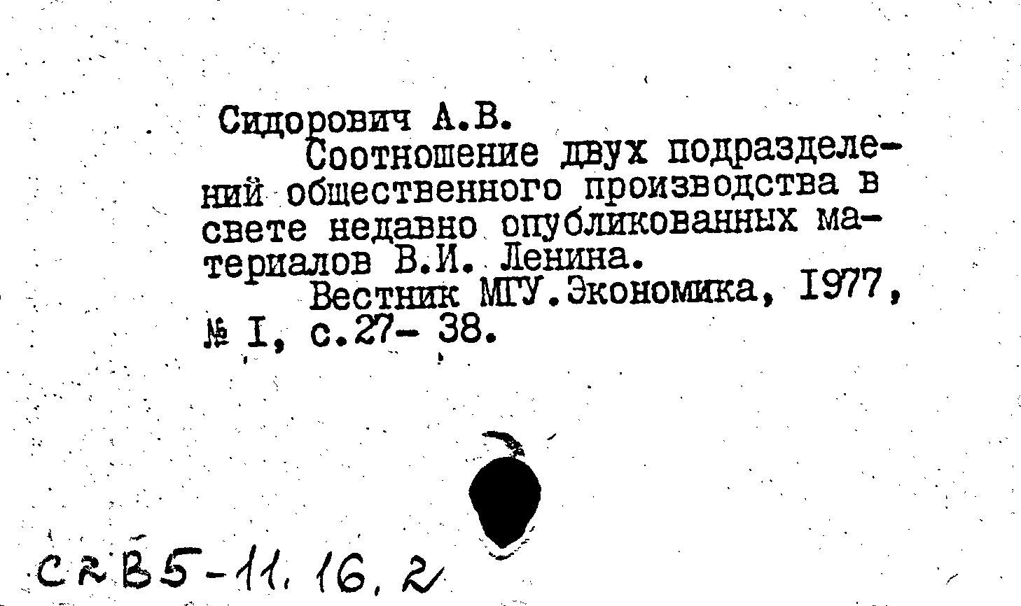 Соотношение двух подразделений общественного производства в свете недавно опубликованных материалов В. И. Ленина