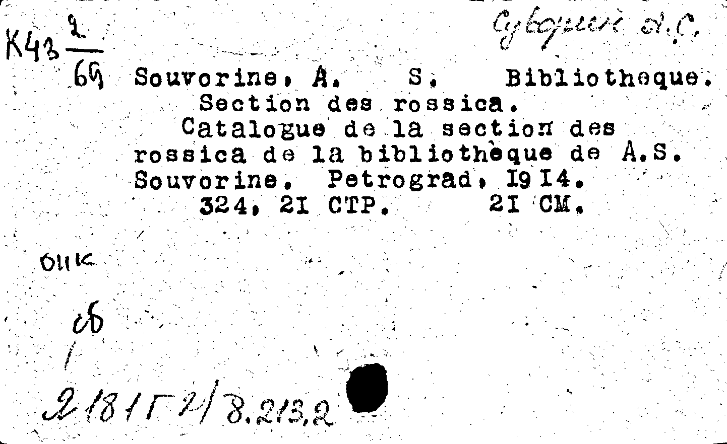Suvorine A. S. Bibliotheque. Section des rossica
