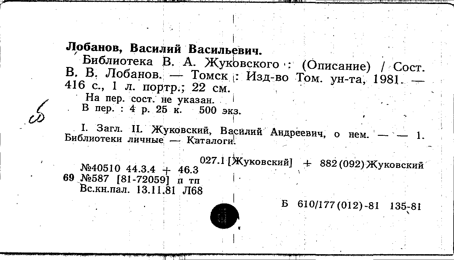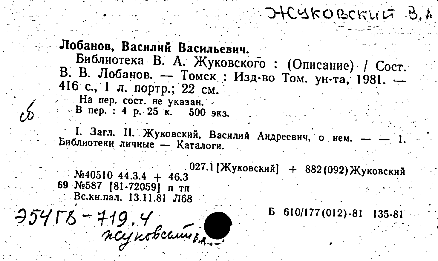 Фонд: СБ, Шифр: У 6 Жуковский В.А./Л 68, Инв.№: 1037345