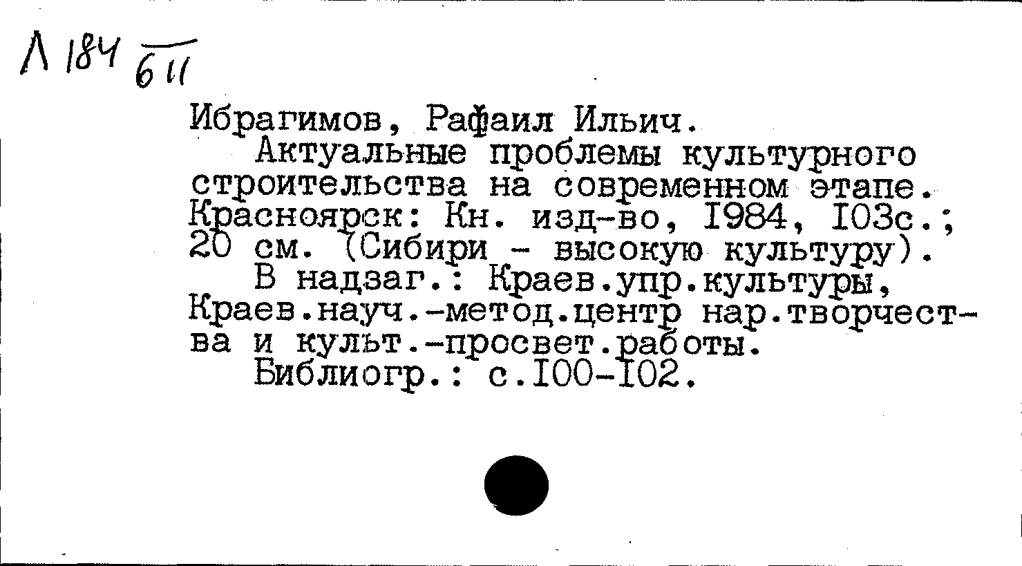 Фонд: КХ, Шифр: Л 184 /611, Инв.№: 1053102