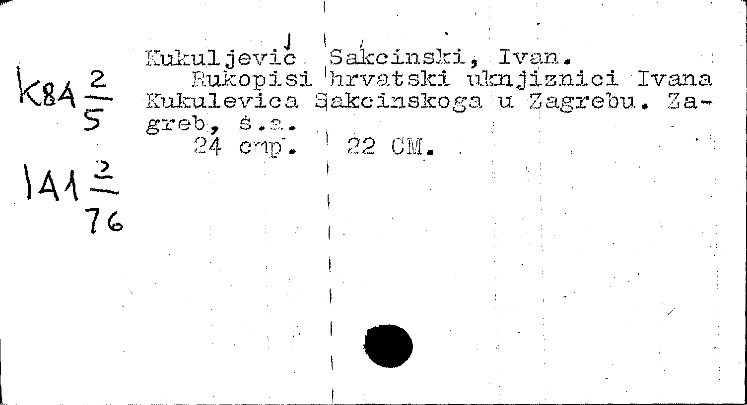 Rukopisi hrvatski uknjiznici Ivan Kukulevica Sakcinskoga u Zagrebu
