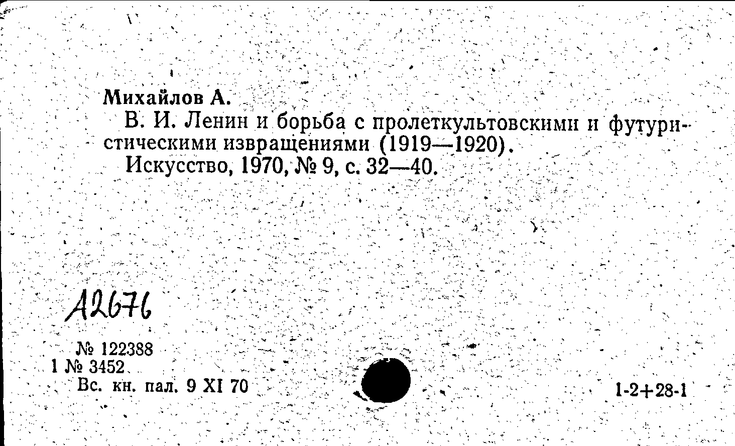 В. И. Ленин и борьба с пролеткультовскими и футуристическими извращениями (1919-1920)