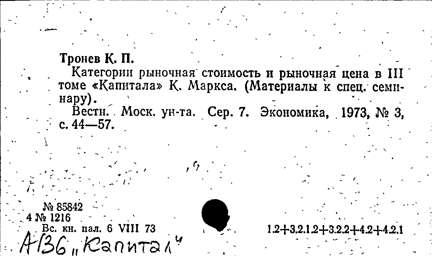 Категории рыночная стоимость и рыночная цена в III томе "Капитала" К. Маркса