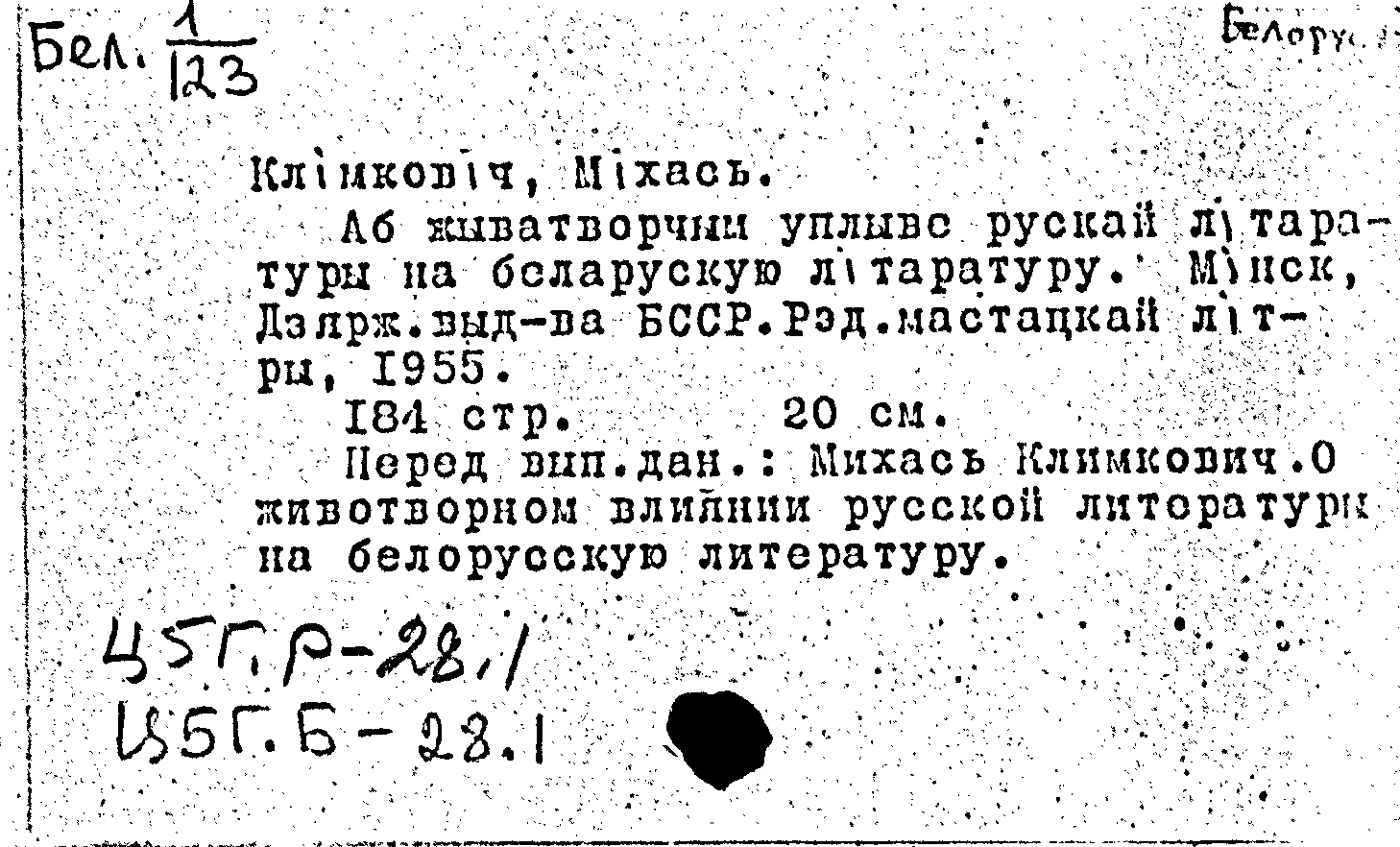 Фонд: КХ, Шифр: Бел 1/123, Инв.№: 1111266