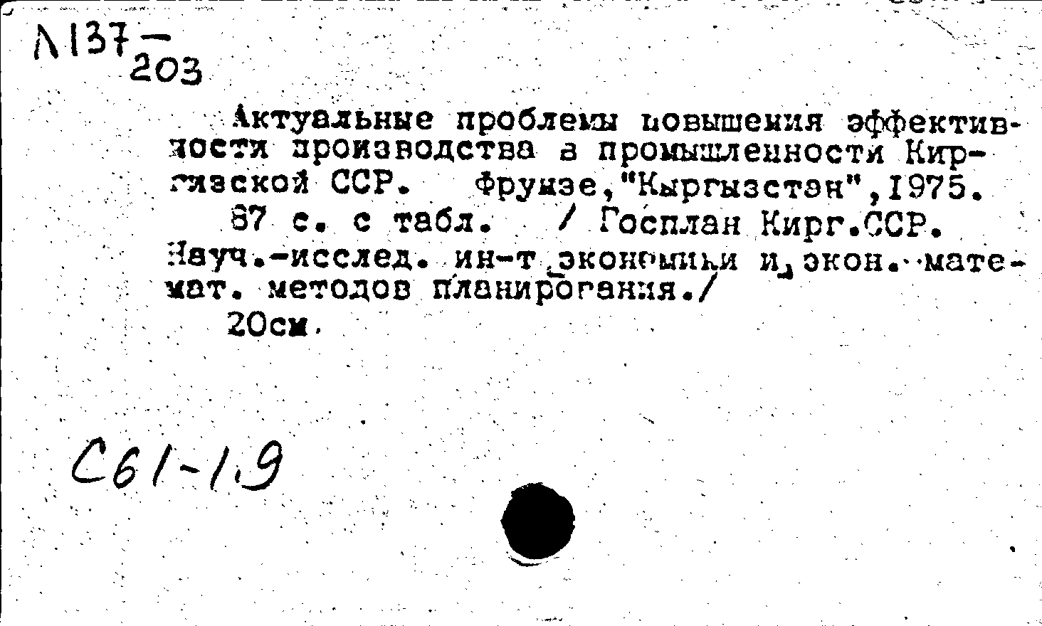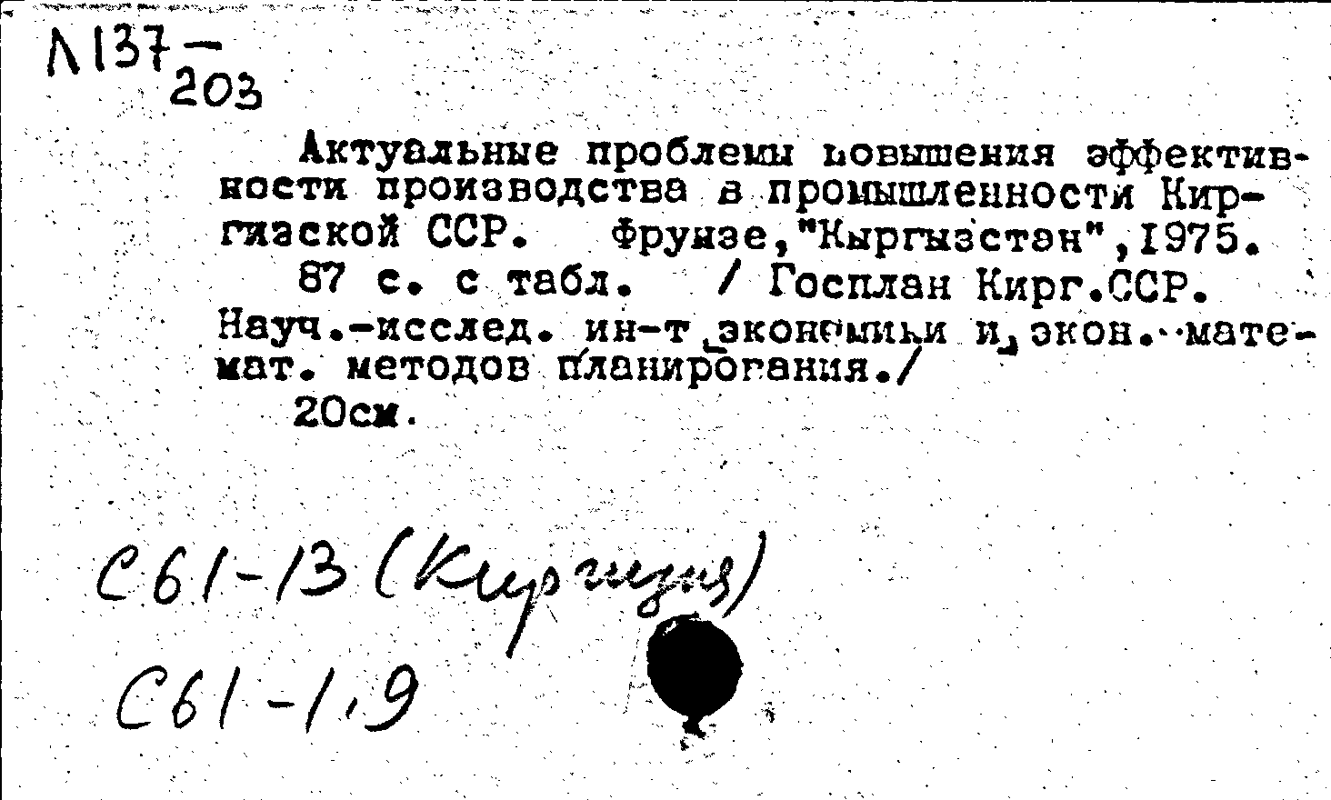 Актуальные проблемы повышения эффективности производства в промышленности Киргизской ССР
