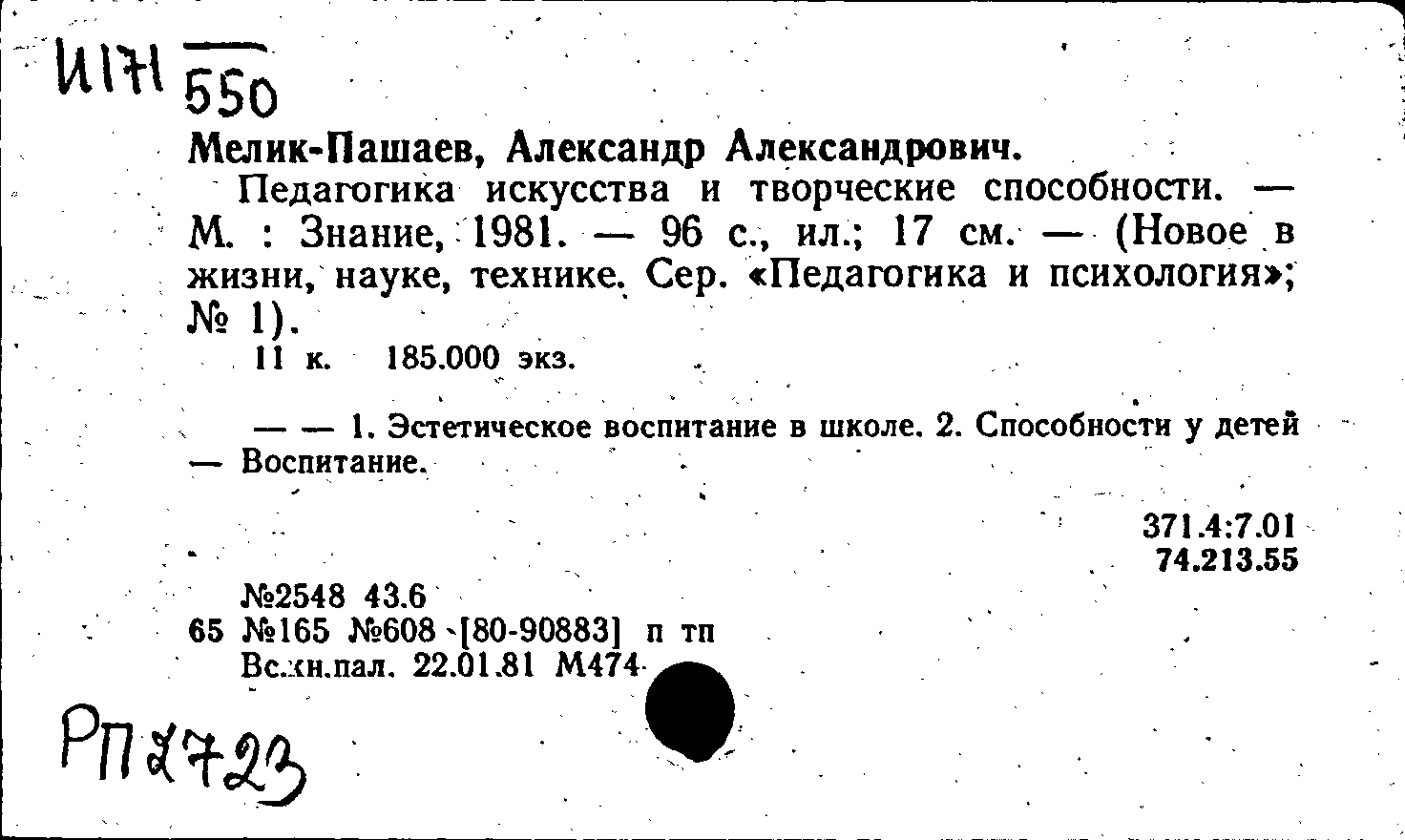 Фонд: КХ, Шифр: И 171 /550, Инв.№: 1185362