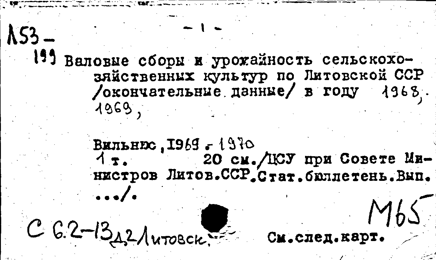 Книга: Валовые сборы и урожайность сельскохозяйственных культур по Литовской ССР (окончательные сборы) в.... ...в 1968 году