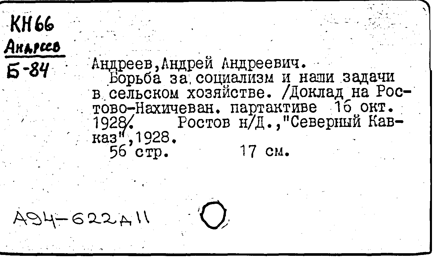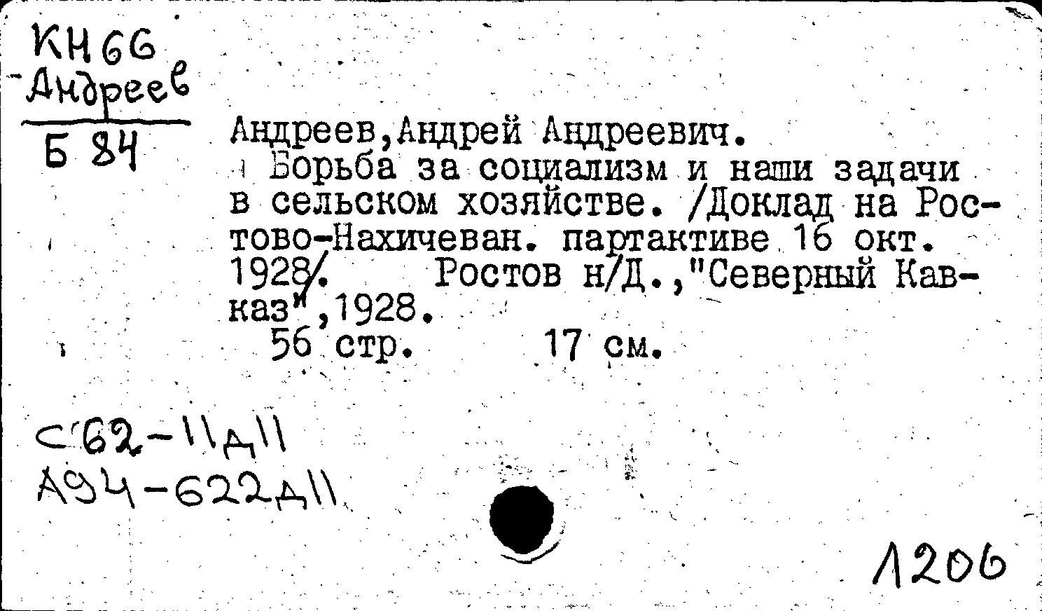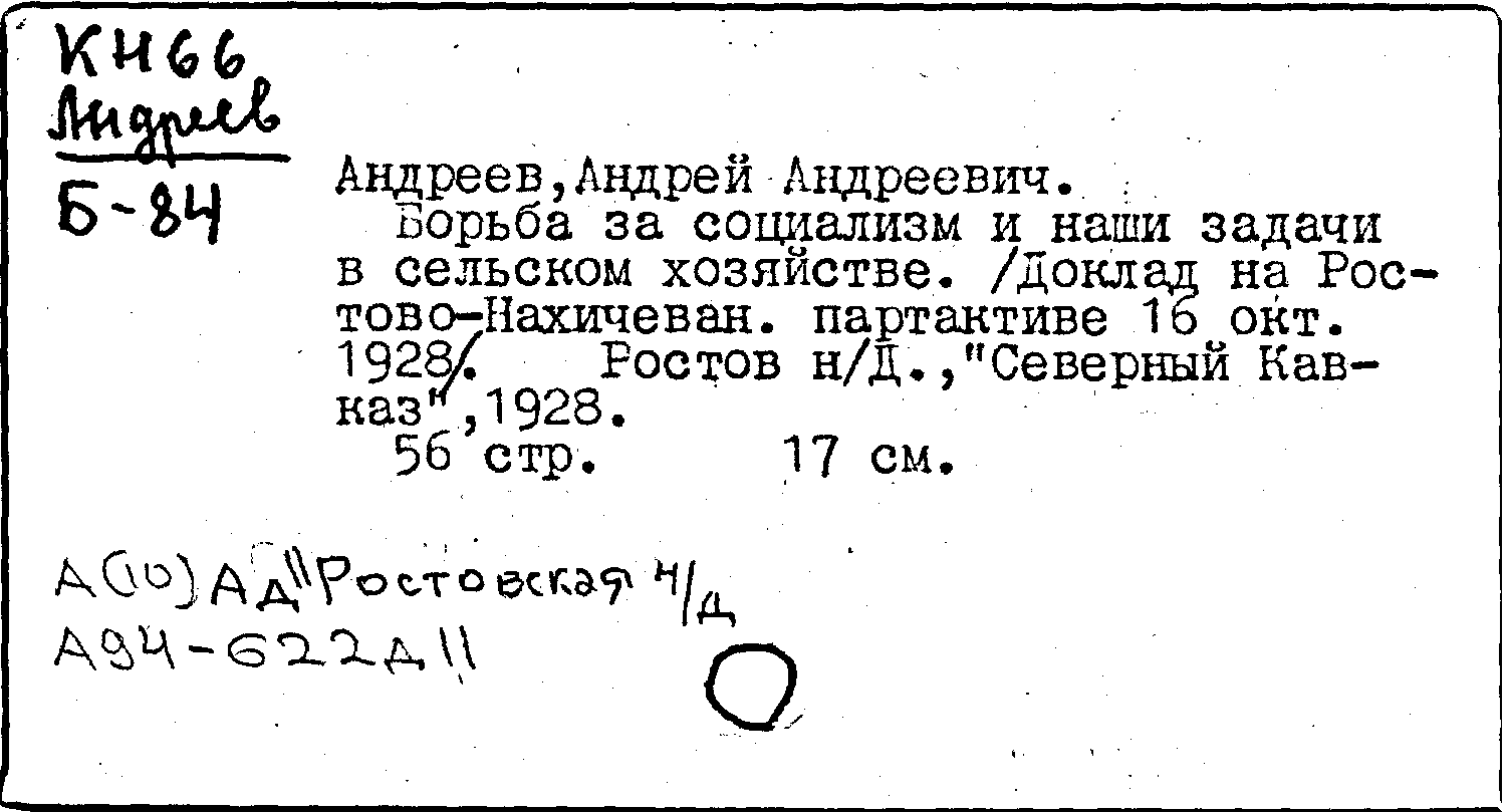 Фонд: КХ, Шифр: КН 66 Андреев/Б84, Инв.№: 1192918