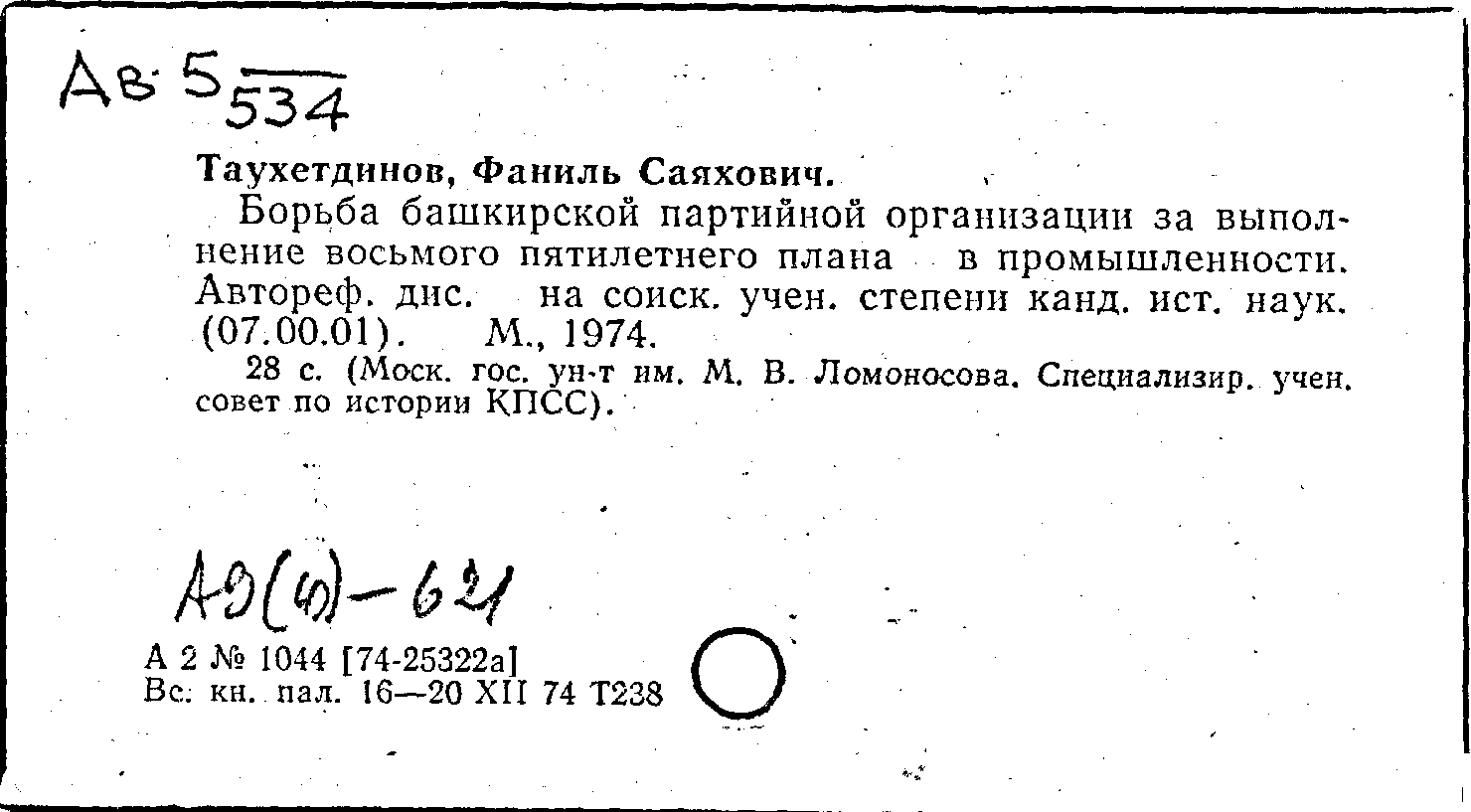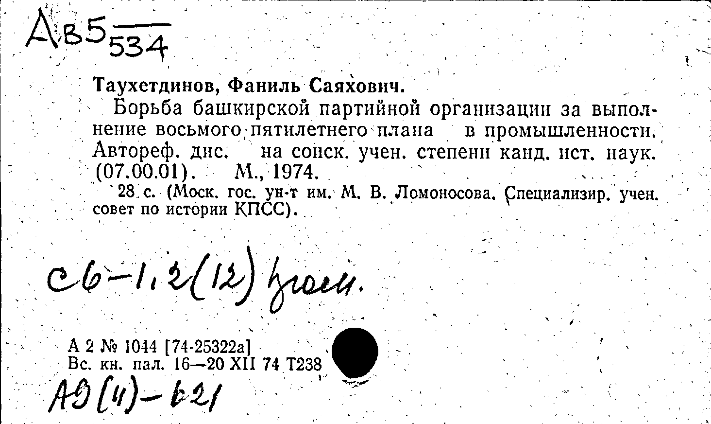 Фонд: КХ, Шифр: Ав 5 /534, Инв.№: 1242261