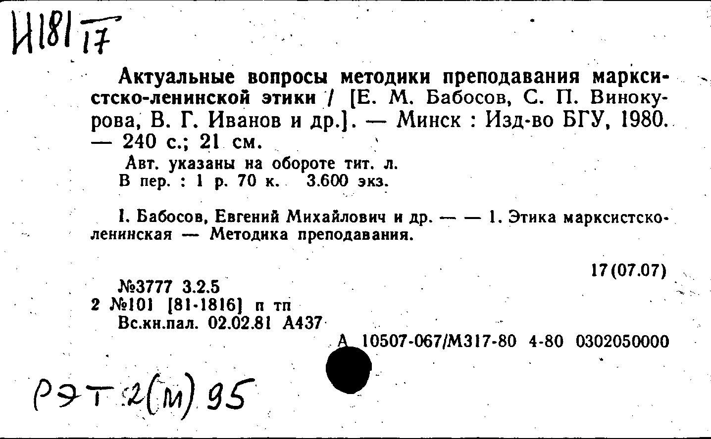 Актуальные вопросы методики преподавания марксистско-ленинской этики