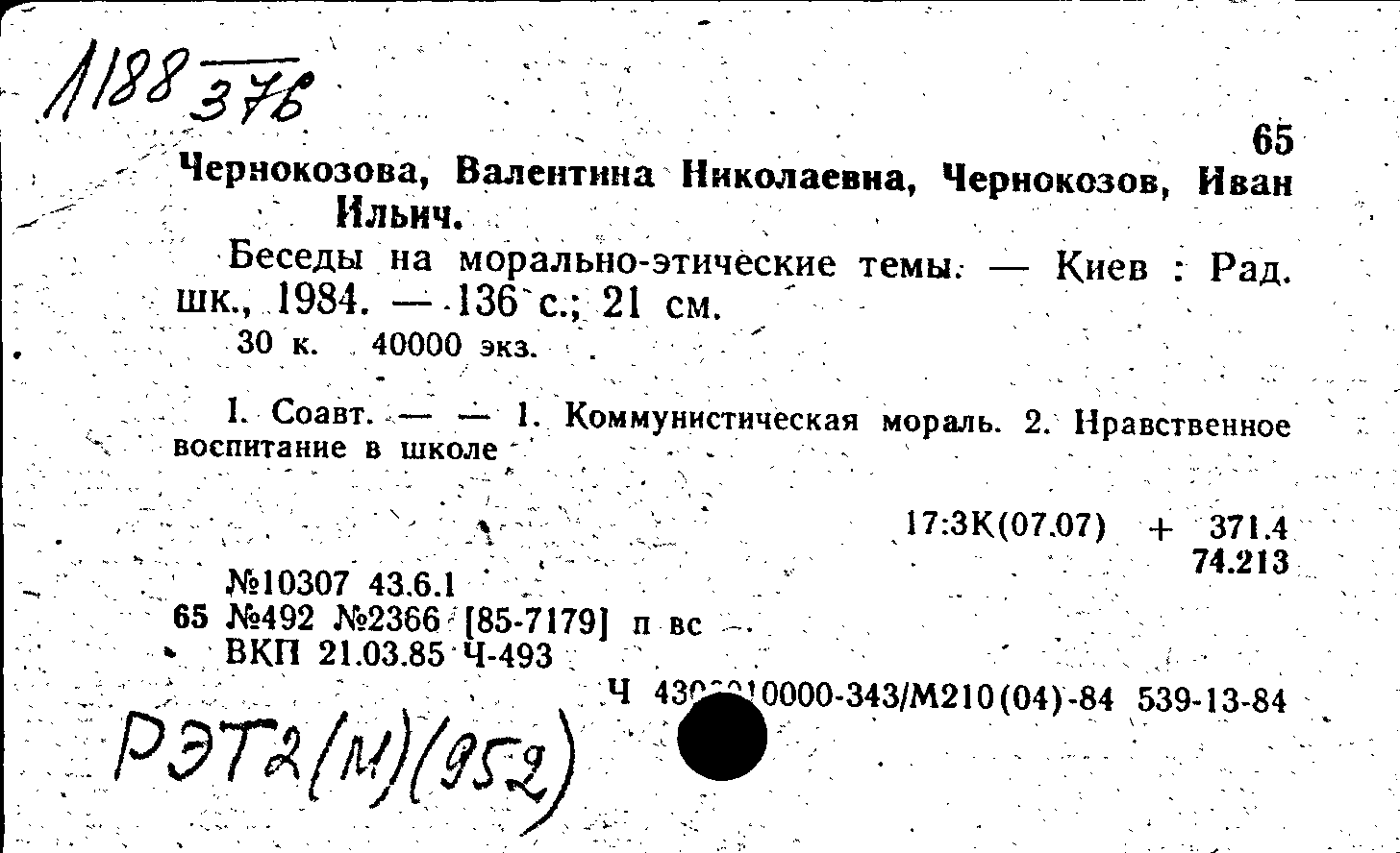 Фонд: КХ, Шифр: Л 188 /376, Инв.№: 1285450