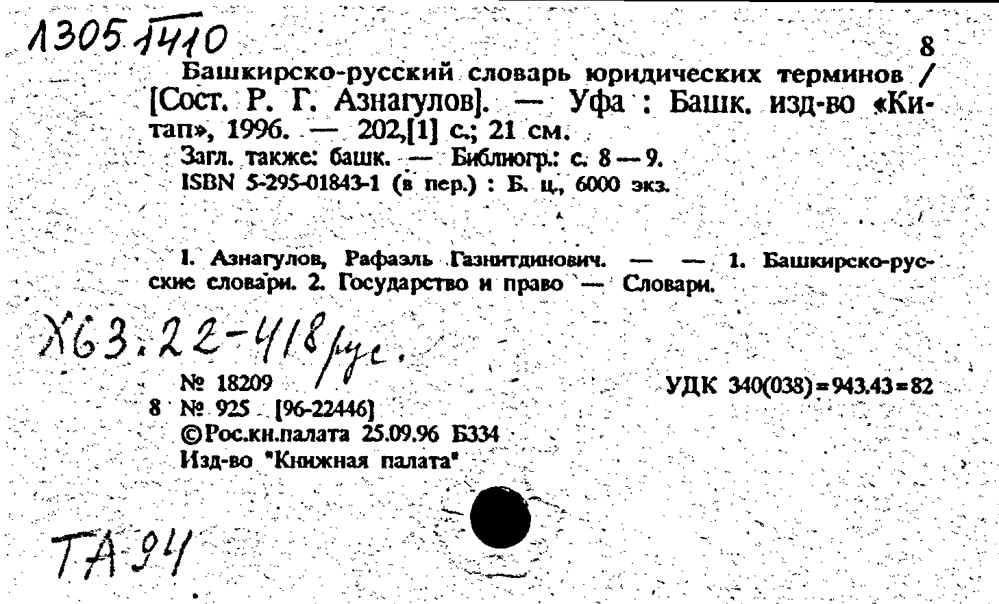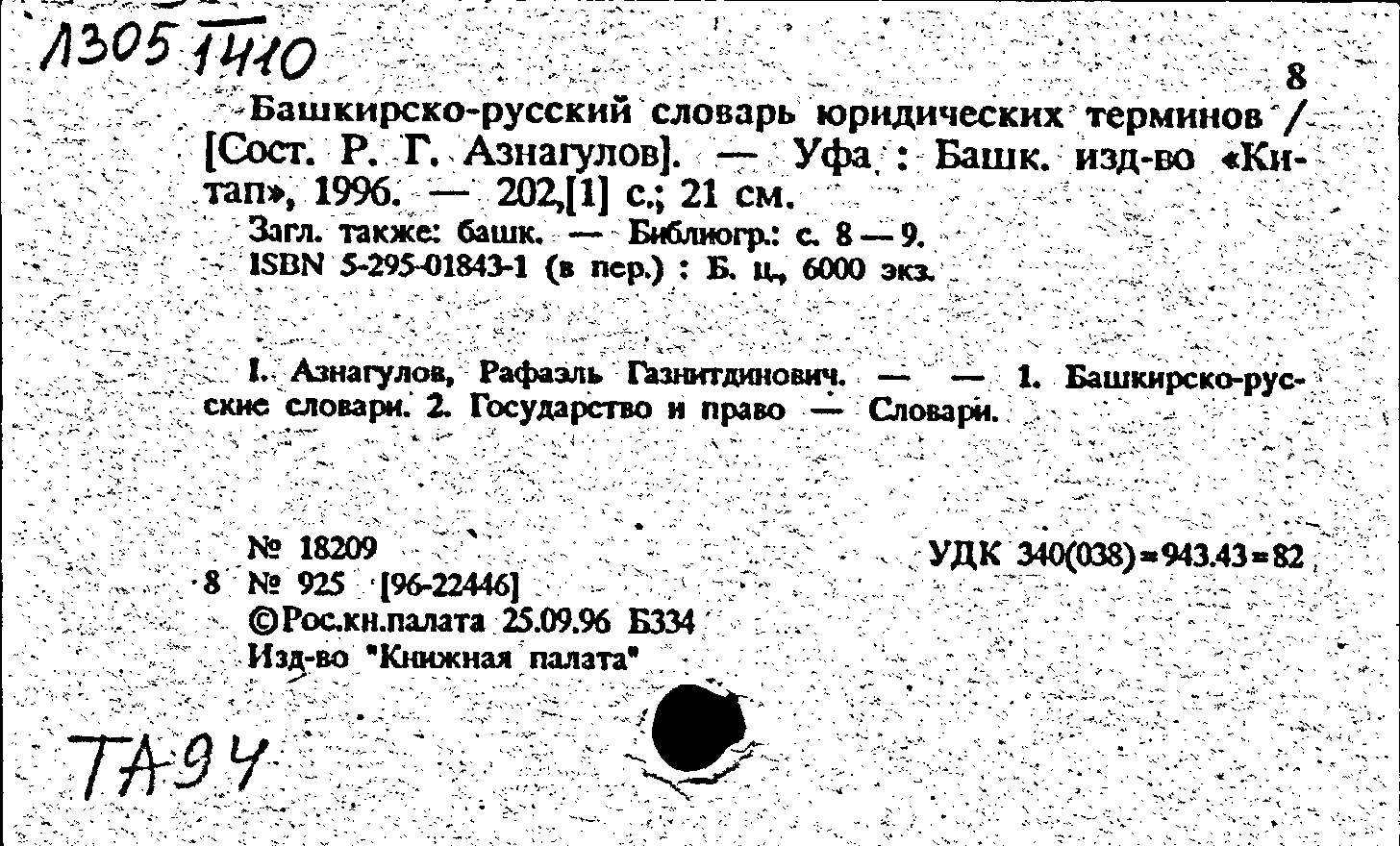 Книга: Башкирско-русский словарь юридических терминов