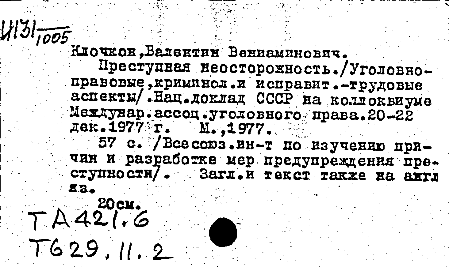 Исправительно-трудовое право СССР, 1917-1991 гг. \ Особенная часть \ Классификация, распределение, прием и учет осужденных (4)