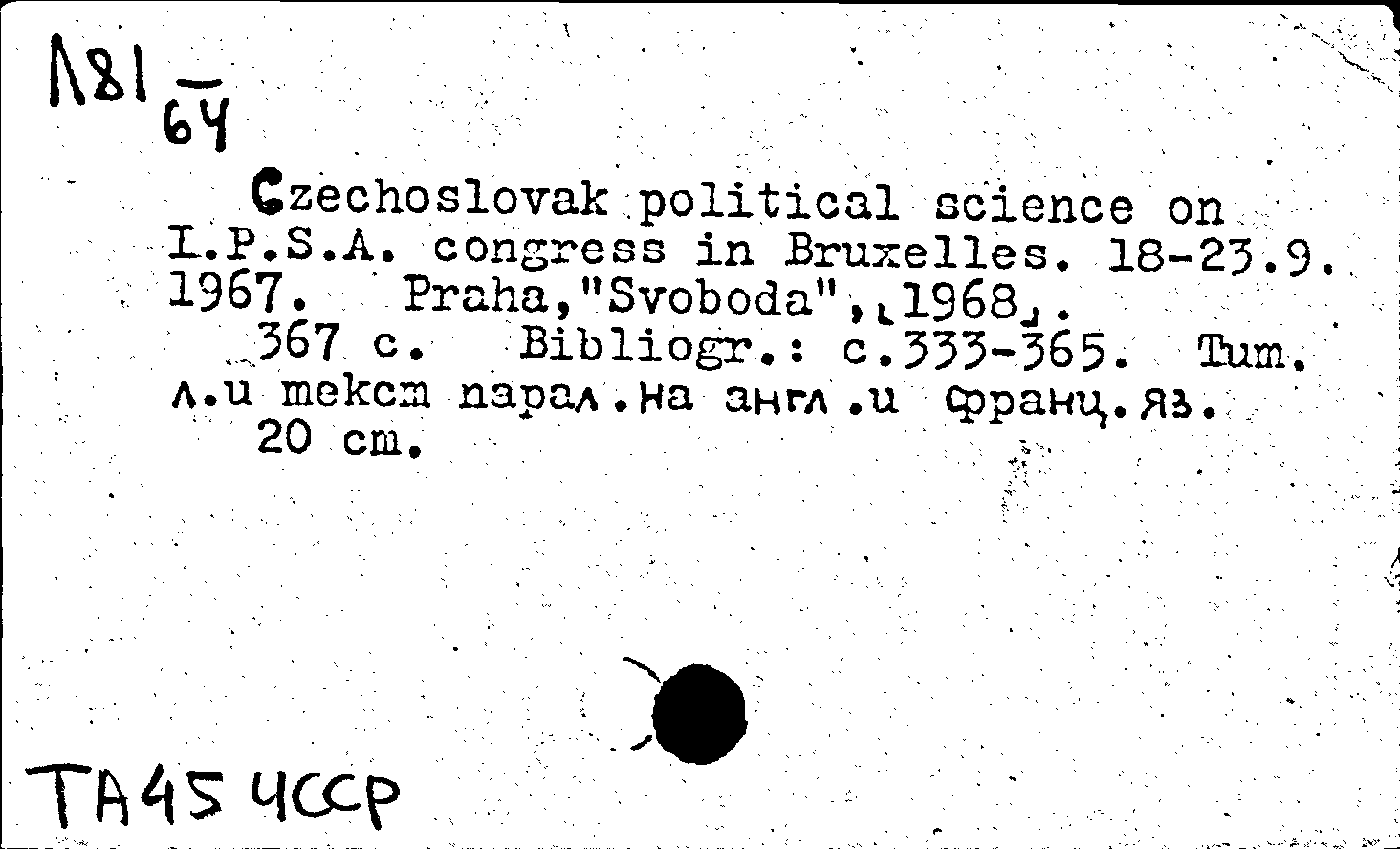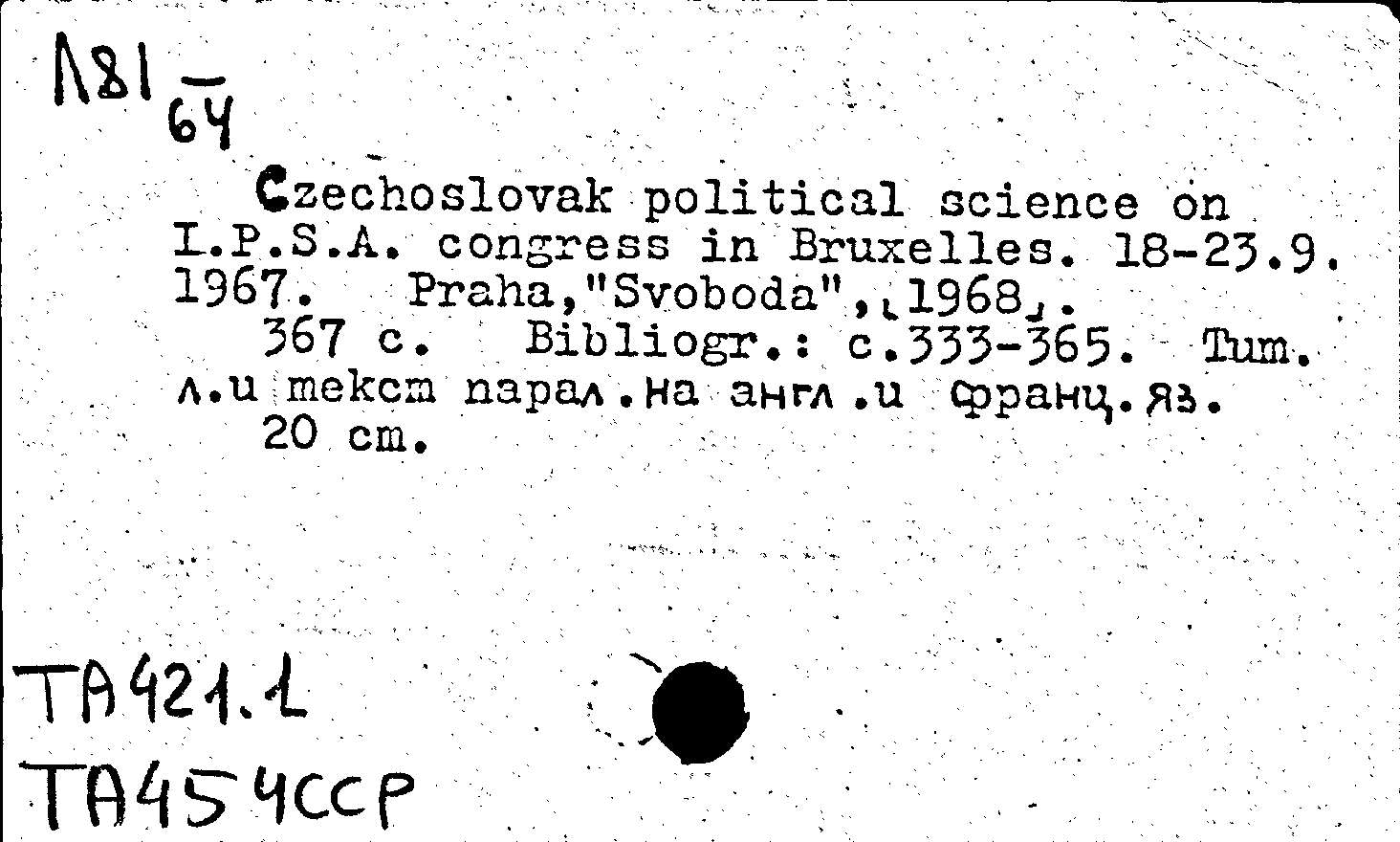 Книга: Czechoslovak political science on I.P.S.A. congress in Bruxelles
