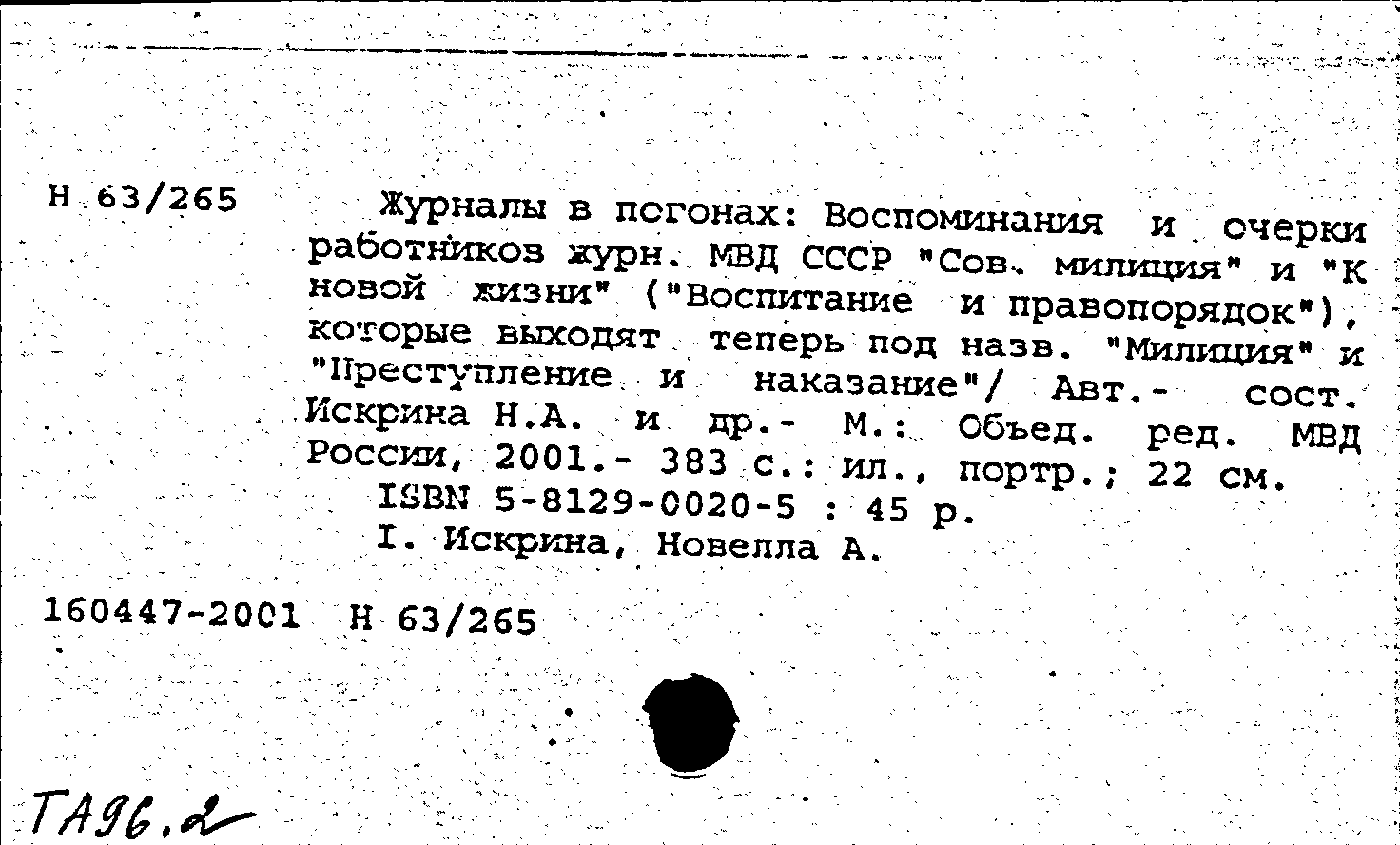 Фонд: КХ, Шифр: Н 63 /265, Инв.№: 1325341