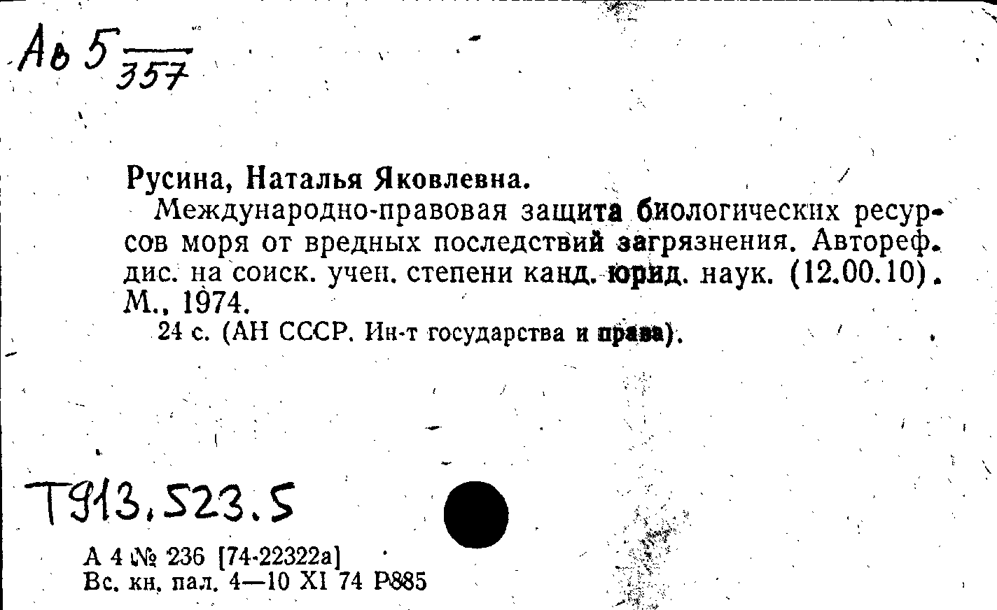 Международно-правовая защита биологических ресурсов моря от вредных последствий загрязнения