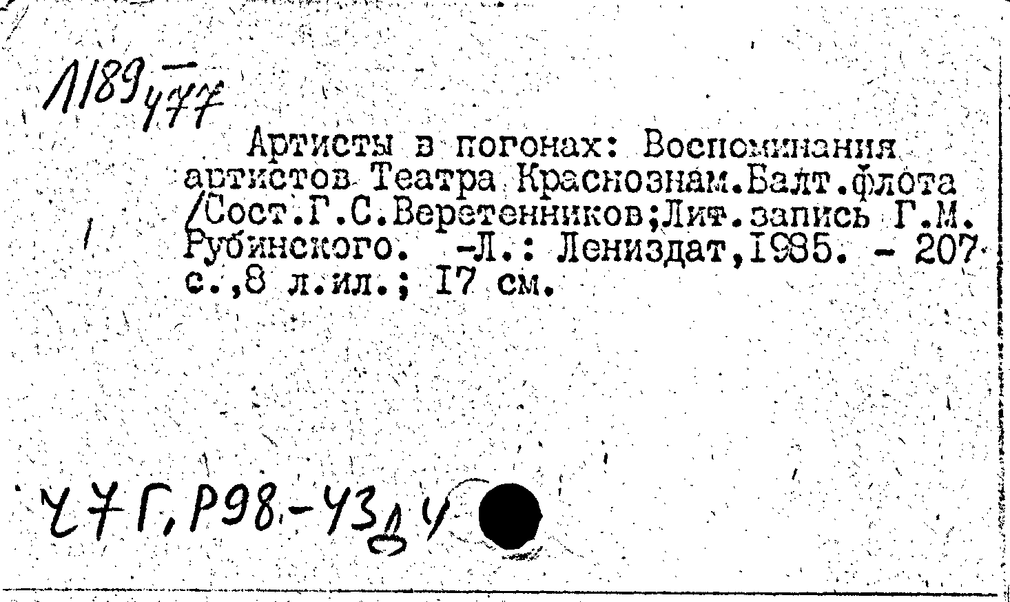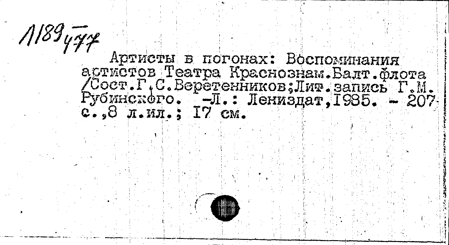 Фонд: КХ, Шифр: Л 189 /477, Инв.№: 1391898