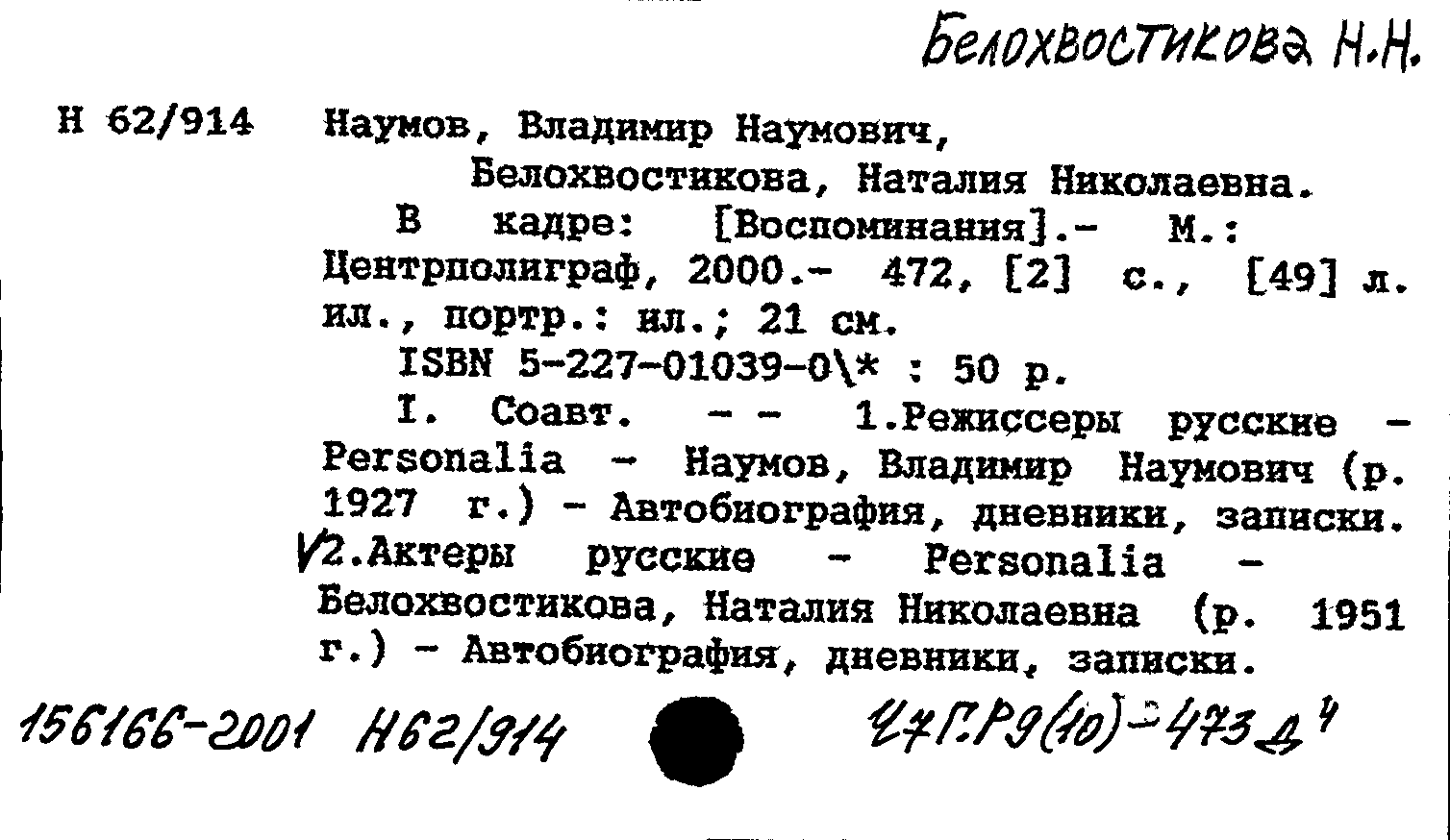 Актеры \ русские \ Personalia \ Белохвостикова, Наталья Николаевна (р. 1951 г.) (1)