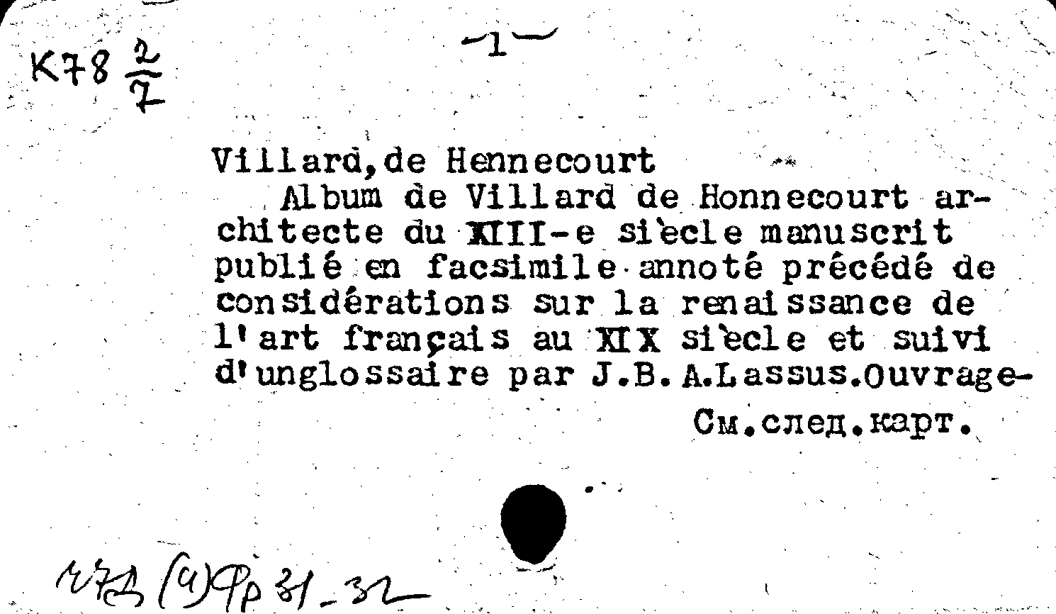 Album de Villard de Honnecourt architecte du XIII-e siecle manuscrit publie en facsimile annote precede de considerations sur la renaissance de l'art francais au XIX siecle et suivi d'unglossaire par J. B. A. Lassus