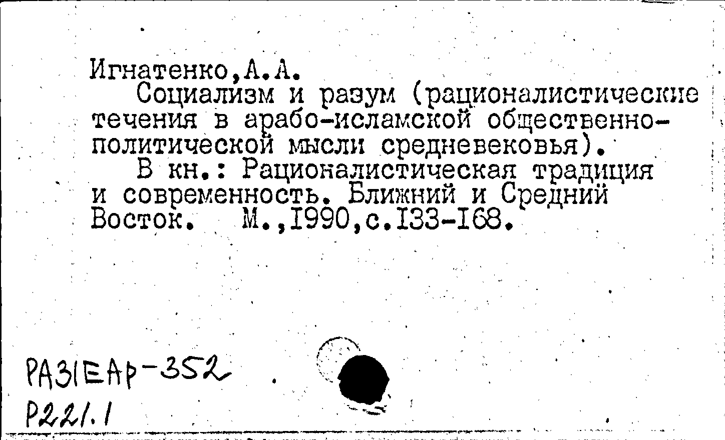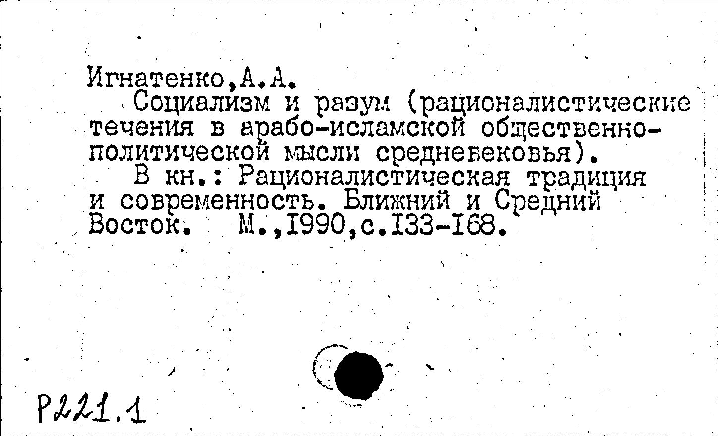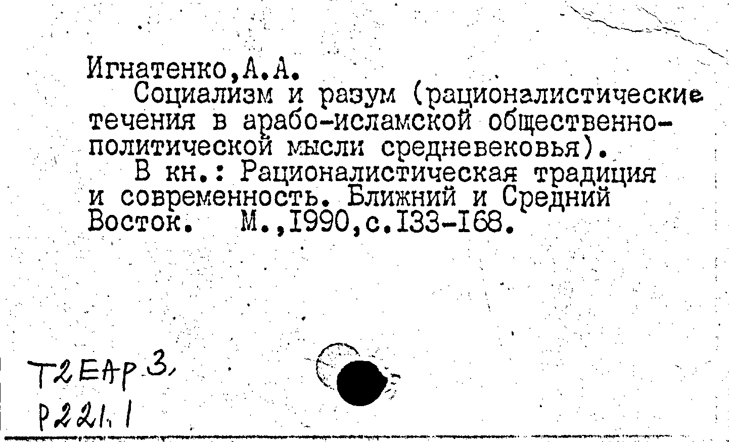 Рационалистическая традиция и современность. Ближний и Средний Восток