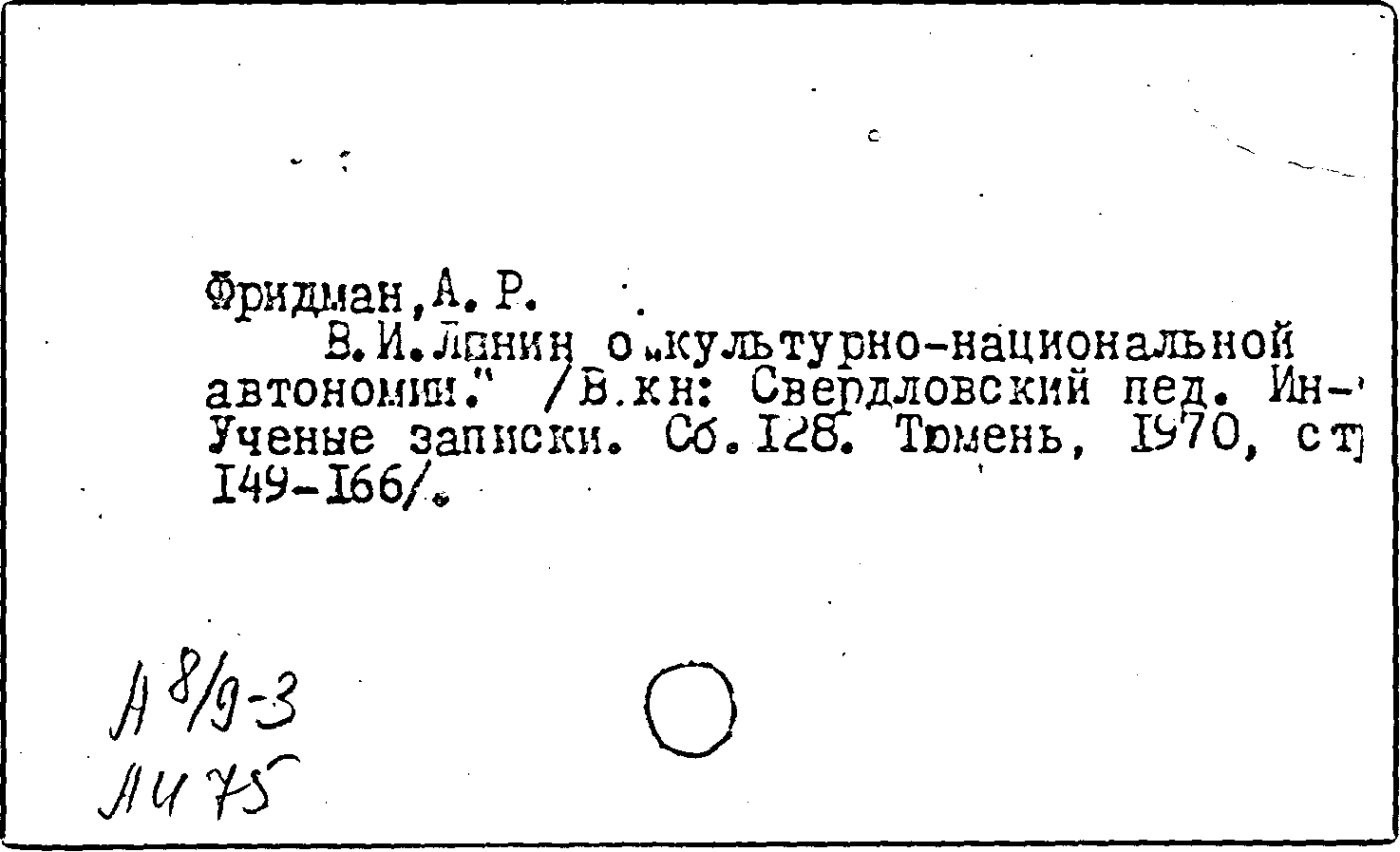 Книга (аналит. описание): В. И. Ленин о "культурно-национальной автономии"