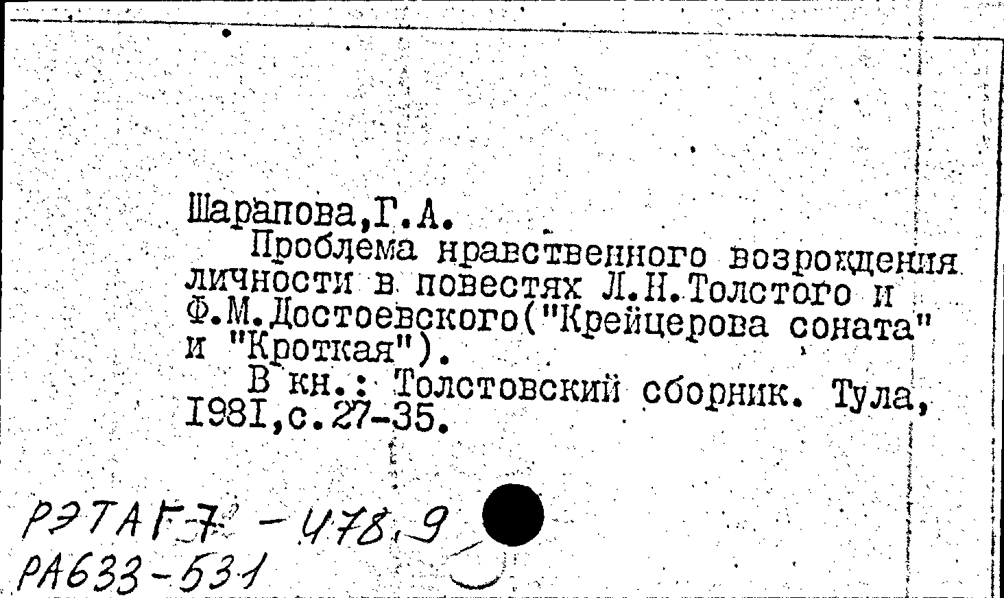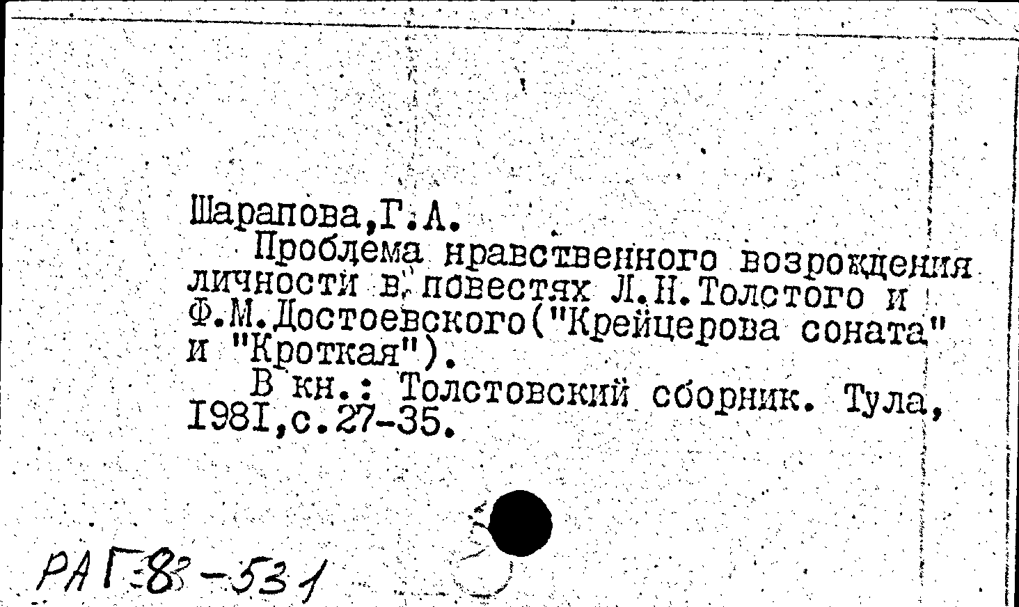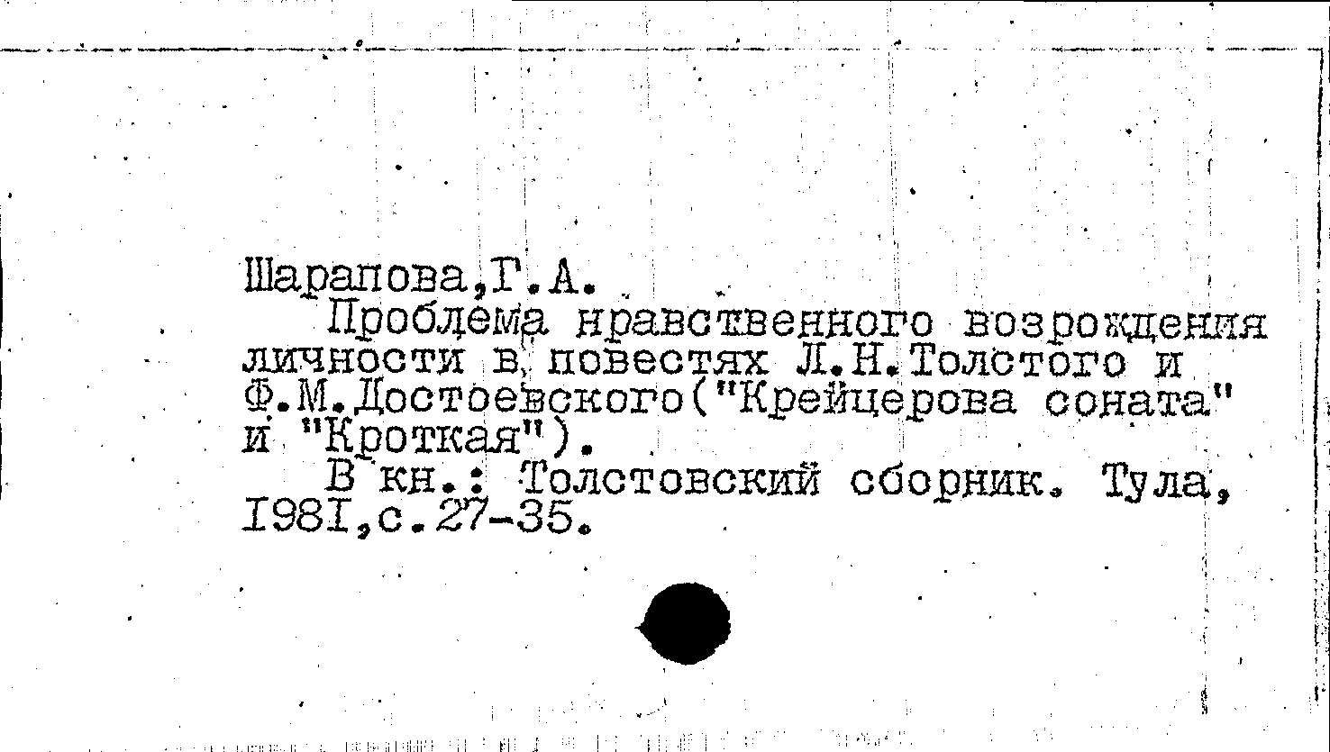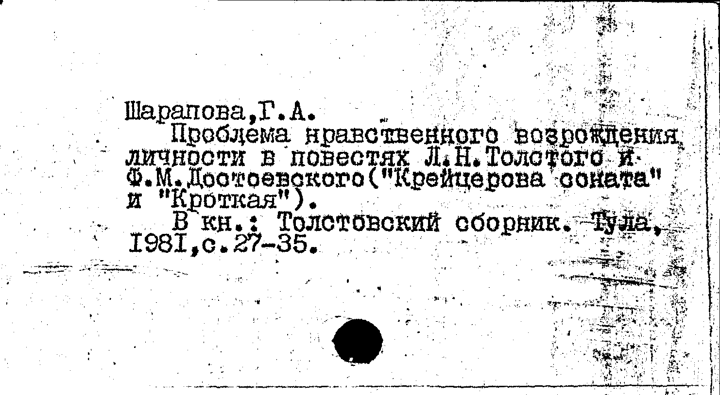 Книга (аналит. описание): Проблема нравственного возрождения личности в повестях Л. Н. Толстого и Ф. М. Достоевского ("Крейцерова соната" и "Кроткая")