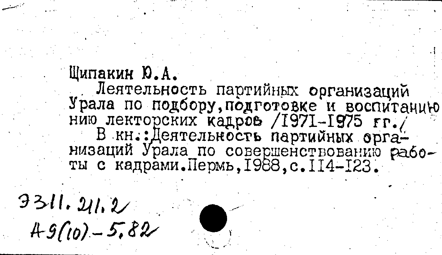 Деятельность партийных организаций Урала по подбору, подготовке и воспитанию лекторских кадров [1971-1975 гг.]