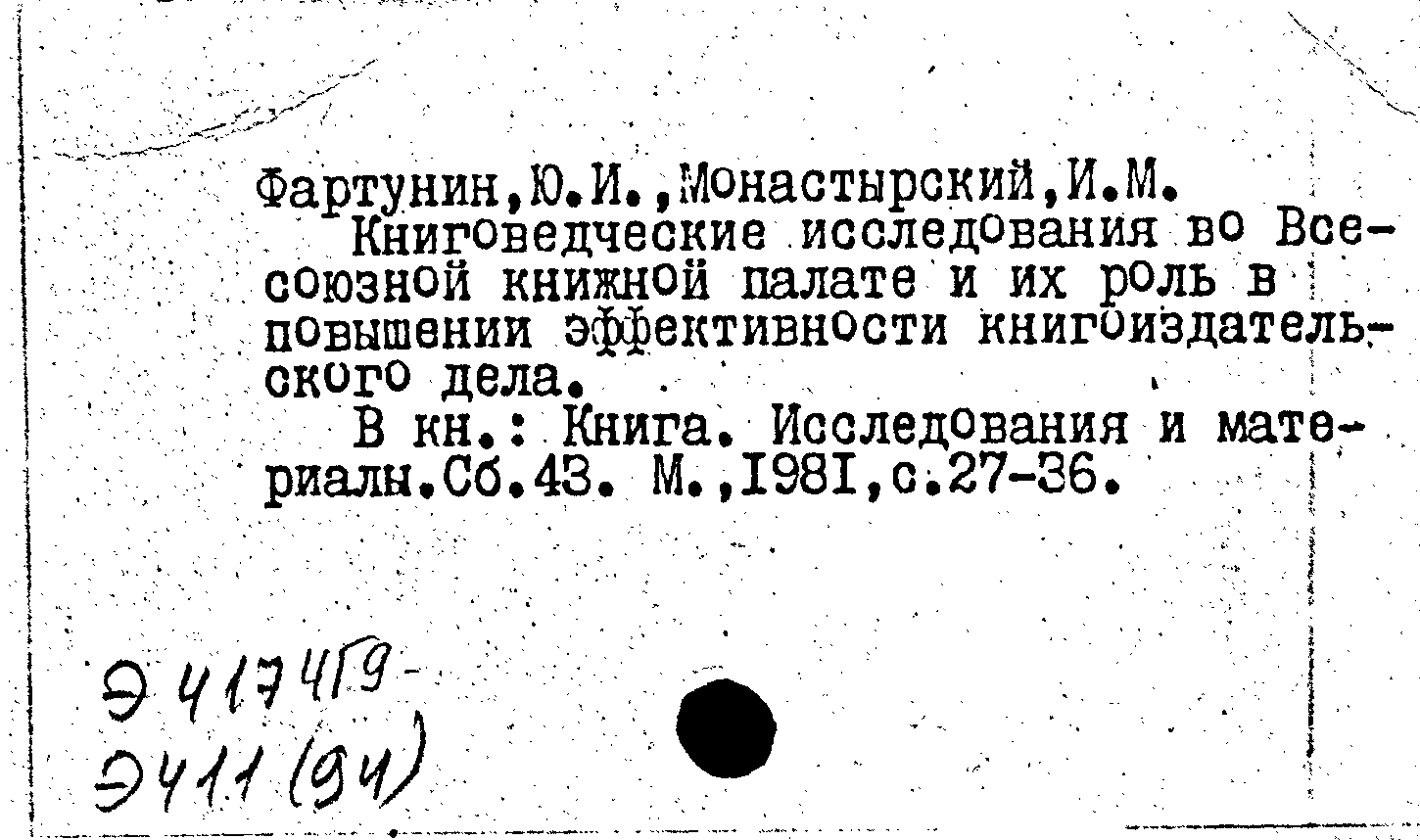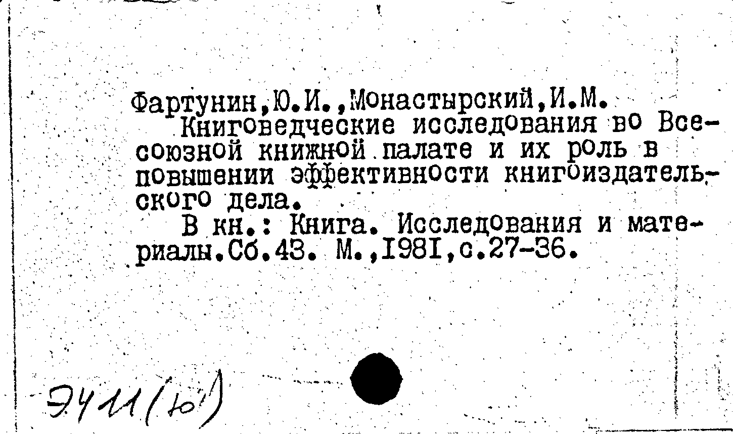 Книга (аналит. описание): Книговедческие исследования во Всесоюзной книжной палате и их роль в повышении эффективности книгоиздательского дела