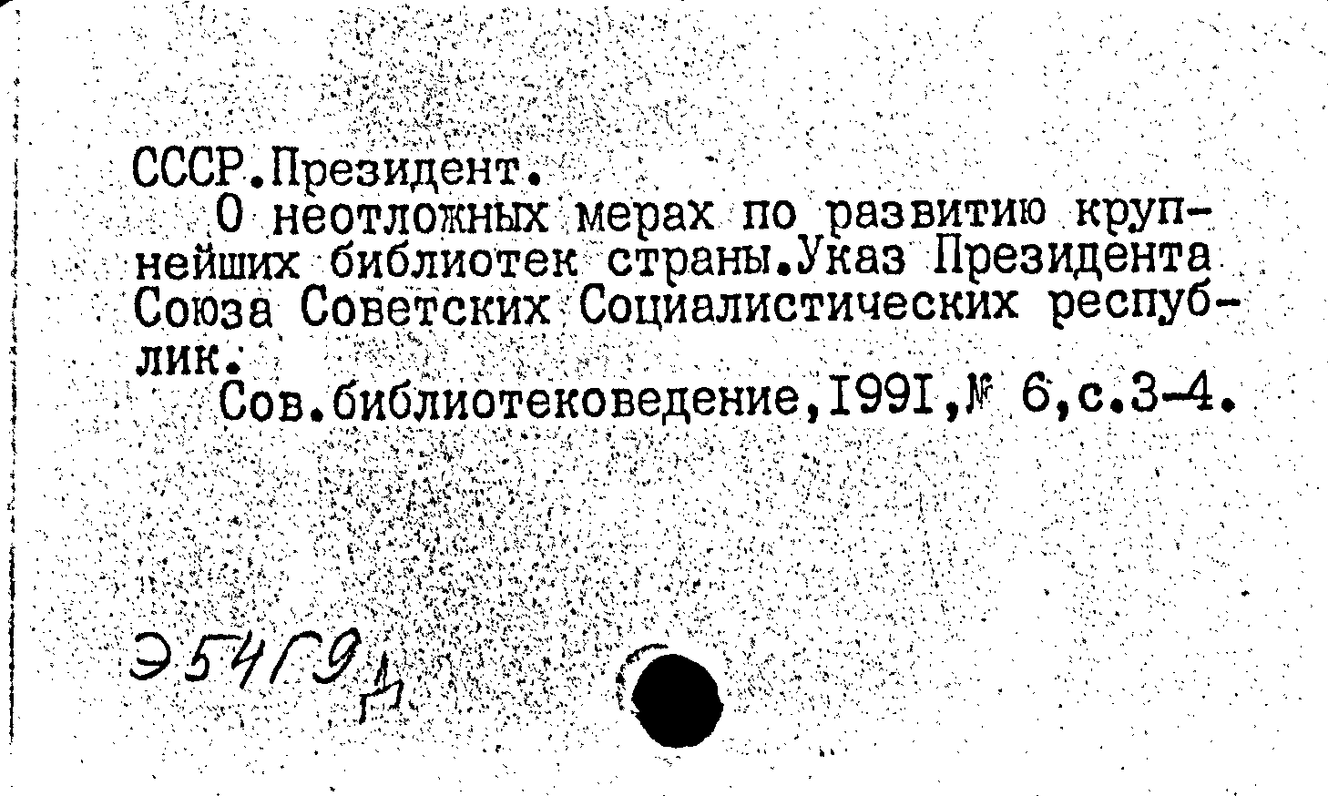 Книга (аналит. описание): О неотложных мерах по развитию крупнейших библиотек страны