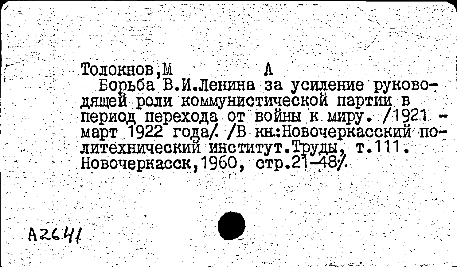 Книга (аналит. описание): Борьба В. И. Ленина за усиление руководящей роли коммунистической партии в период перехода от войны к миру. (1921 - март 1922 года)