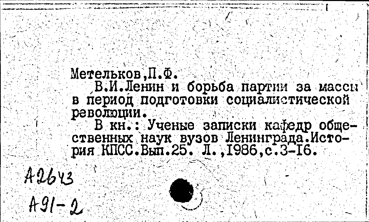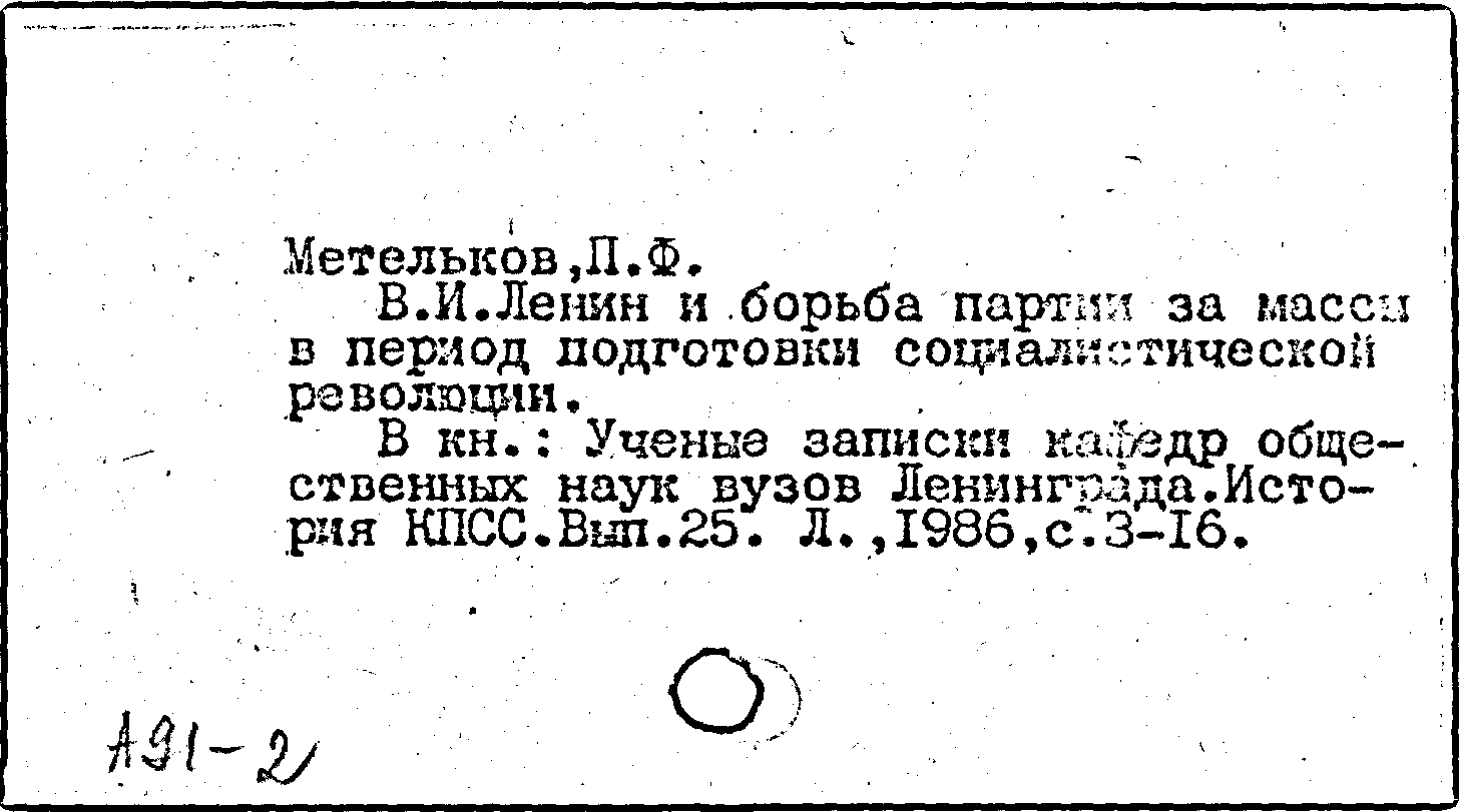 Книга (аналит. описание): В. И. Ленин и борьба партии за массы в период подготовки социалистической революции