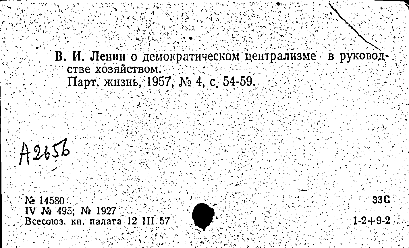 В. И. Ленин о демократическом централизме в руководстве хозяйством