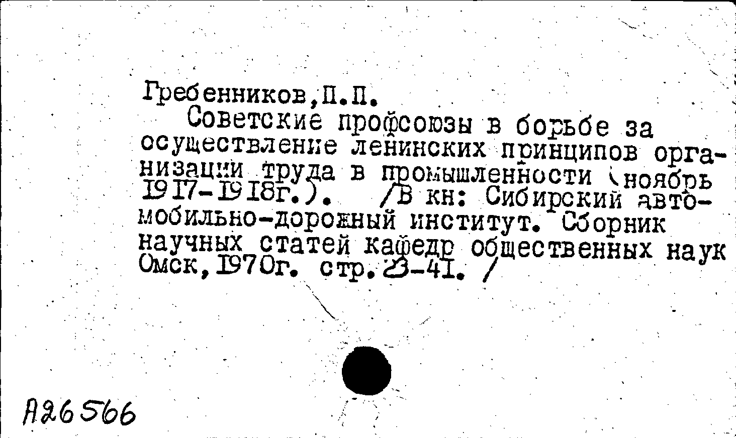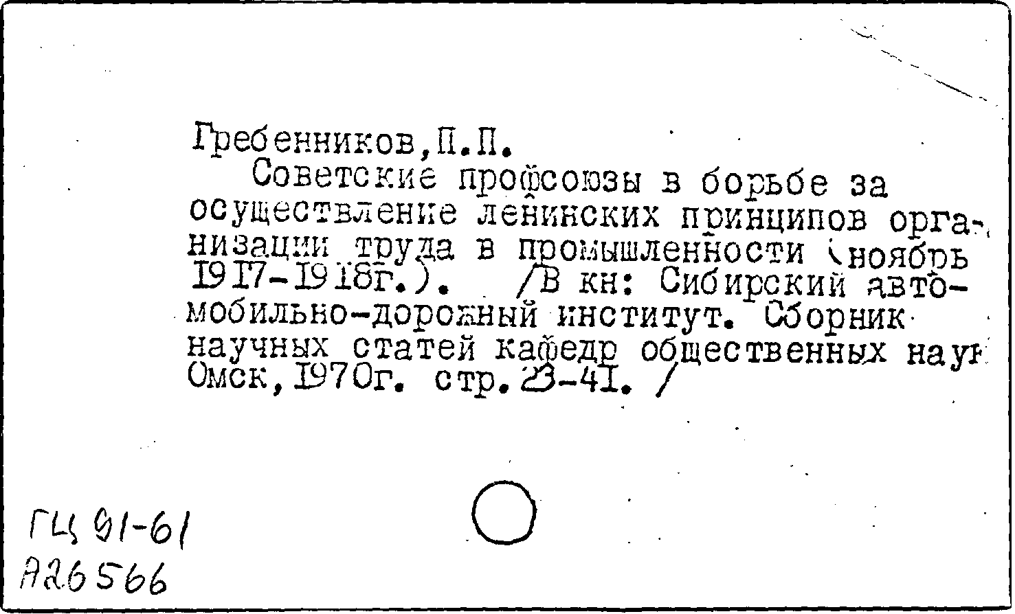Книга (аналит. описание): Советские профсоюзы в борьбе за осуществление ленинских принципов организации труда в промышленности (ноябрь 1917 - 1918 г.)