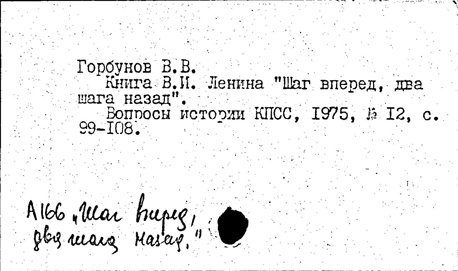 Статья: Книга В. И. Ленина "Шаг вперед, два шага назад". Вопросы истории КПСС, N 12 1975: N 12 1975